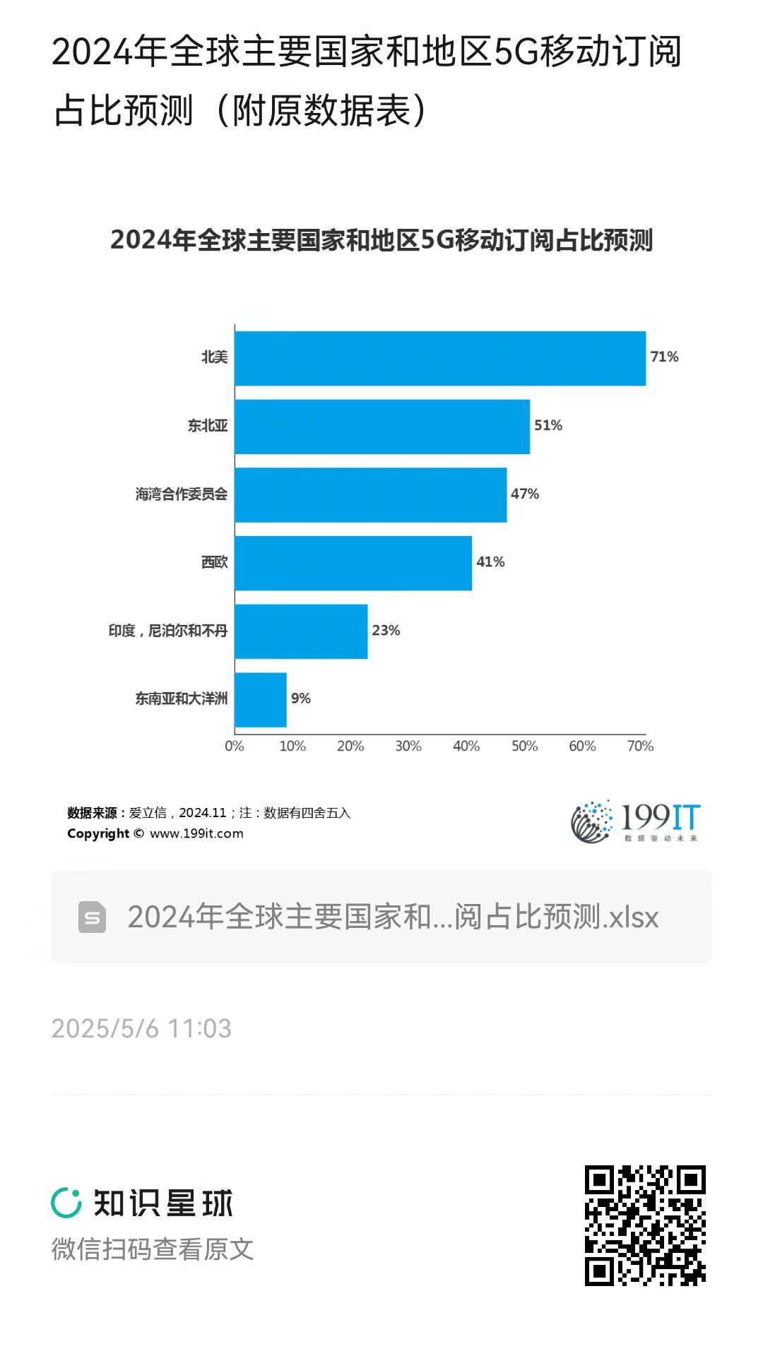 - 2030年全球主要国家和地区5G移动订阅占比预测(附原数据表)