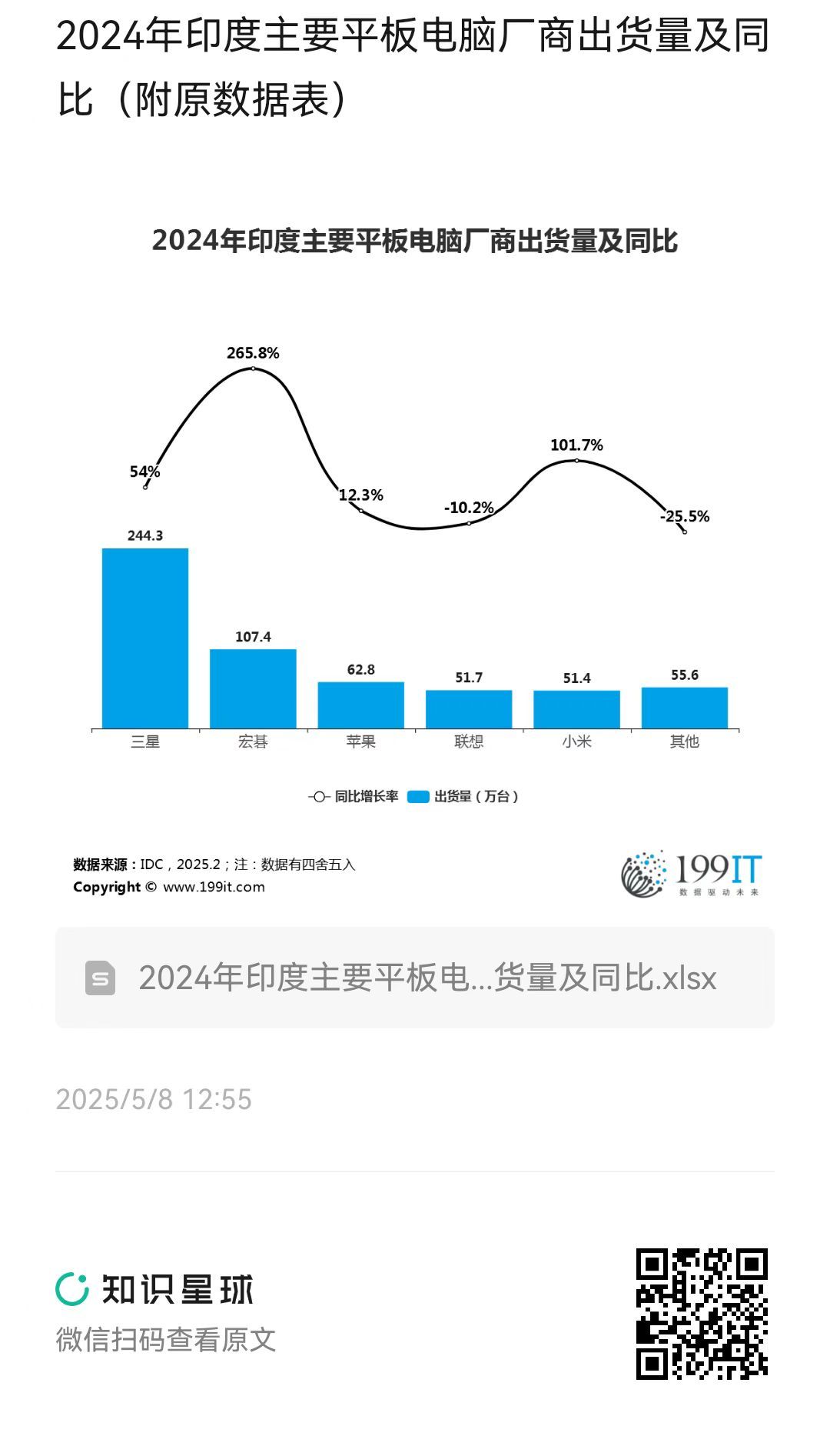 - 2024年Q4印度主要平板电脑厂商出货量及同比(附原数据表)