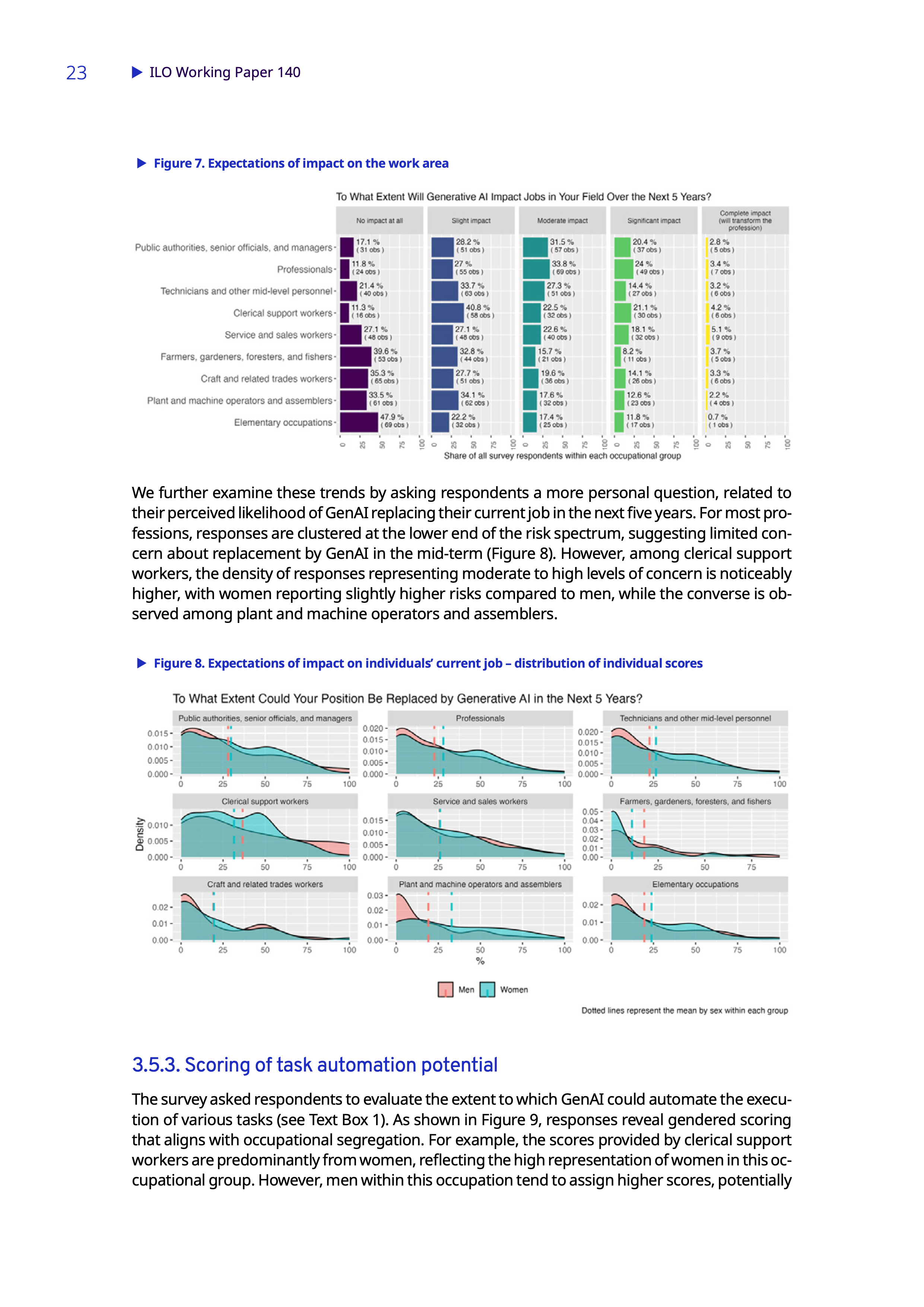 此外,女性从业者的人工智能受影响风险持续显著偏高。在高收入国家,面临最高自动化风险的女性岗位占比达9.6%,与男性同类岗位占比3.5%形成强烈反差。