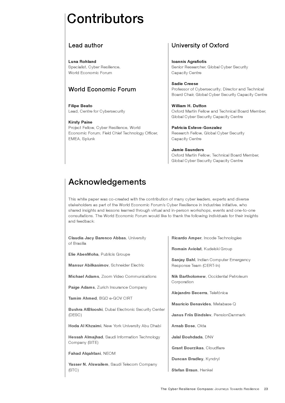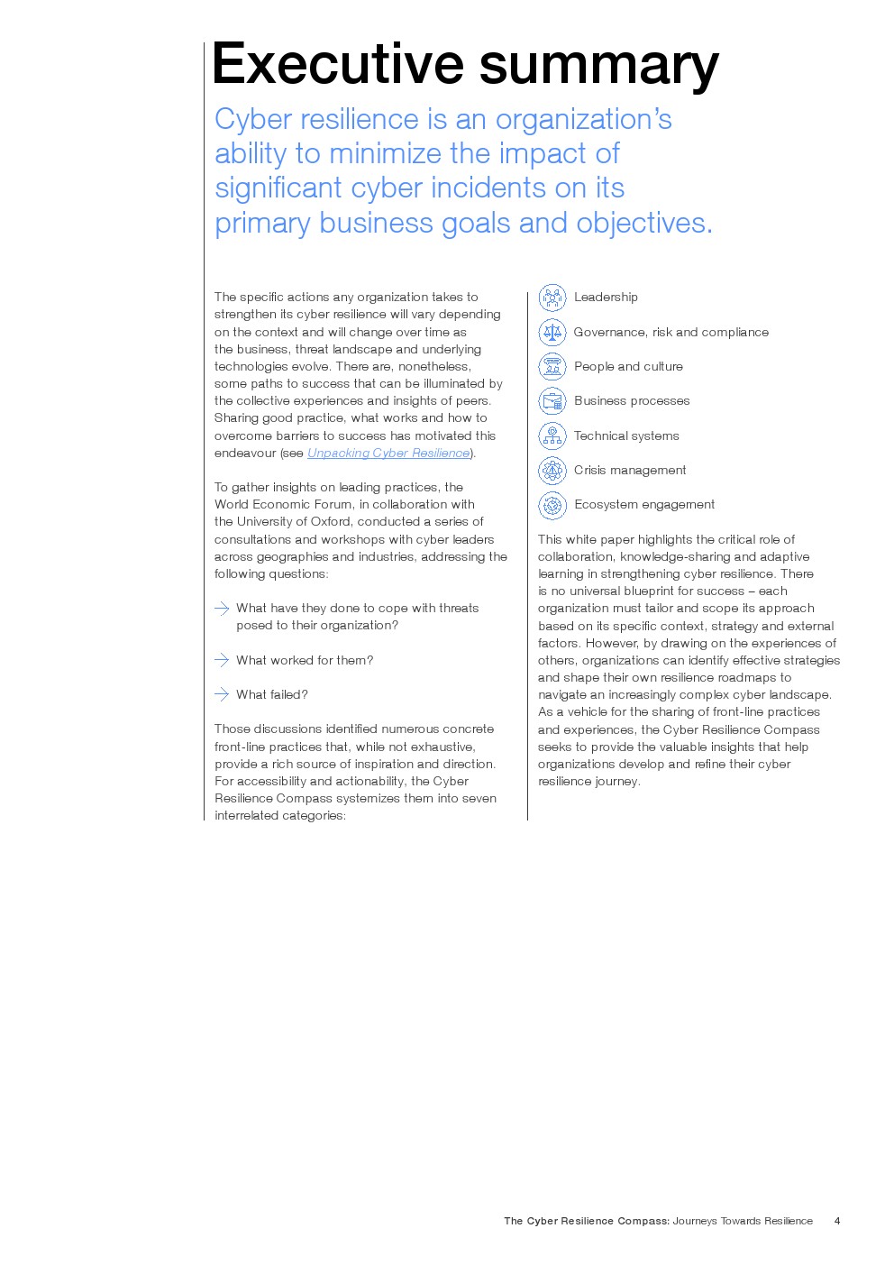 为收集领先实践的洞见,世界经济论坛与牛津大学合作,与全球各地和各行业的网络安全领导者开展了一系列咨询和研讨会,探讨以下问题: