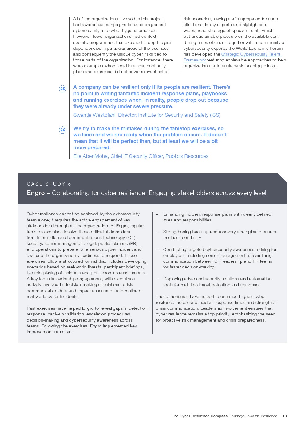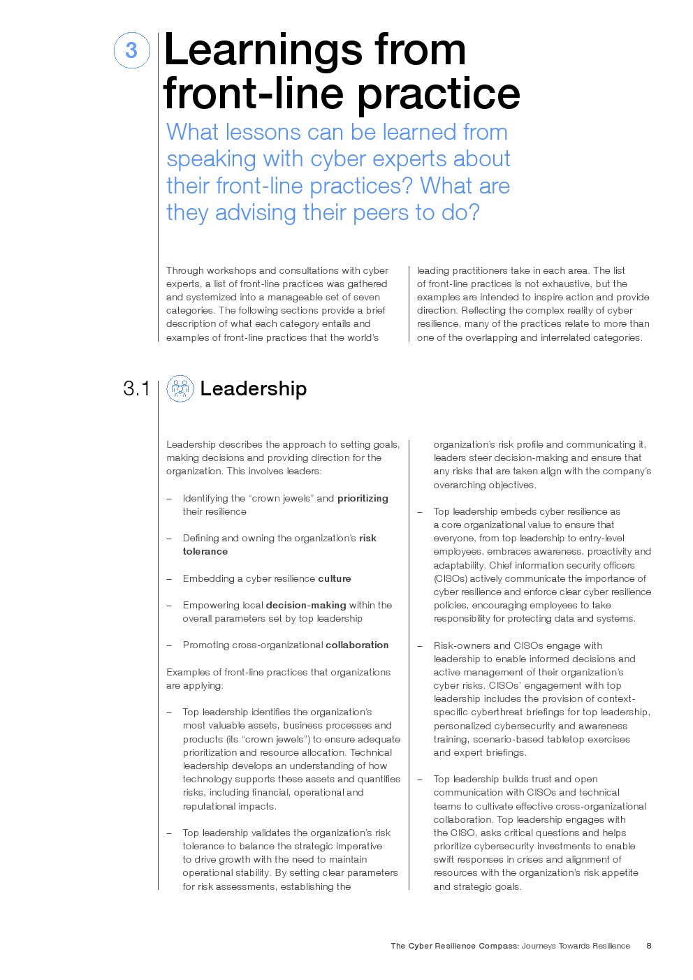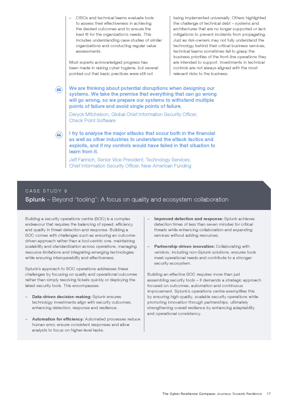 任何组织为增强网络韧性所采取的具体措施都会因具体情况而异,并随着业务发展、威胁形势变化和底层技术演进而不断调整。尽管如此,通过同行的集体经验和洞察,仍可揭示一些成功路径。分享良好实践、有效方法和成功障碍的克服之道正是本研究的初衷。
