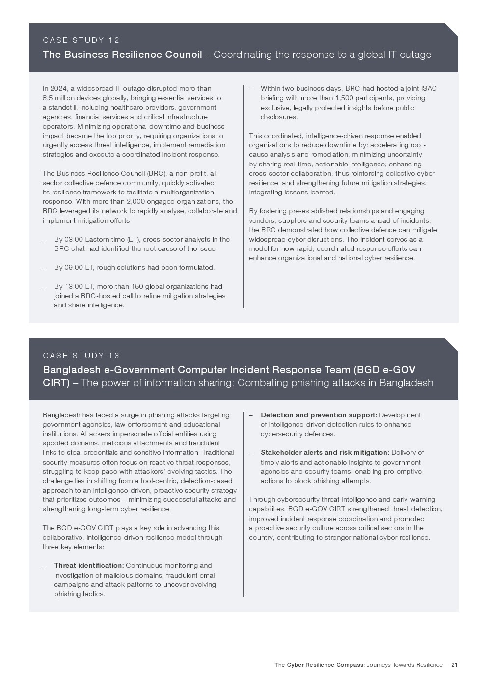 指南强调了协作、知识共享和适应性学习在增强网络韧性中的关键作用。成功没有通用蓝图——每个组织都需根据具体环境、战略和外部因素来定制和规划自身方案。通过借鉴他人经验,组织可以识别有效策略,制定适合自身需求的韧性路线图,以应对日益复杂的网络环境。作为一线实践和经验分享的载体,报告旨在提供宝贵洞见,帮助组织发展和完善其网络韧性建设进程。