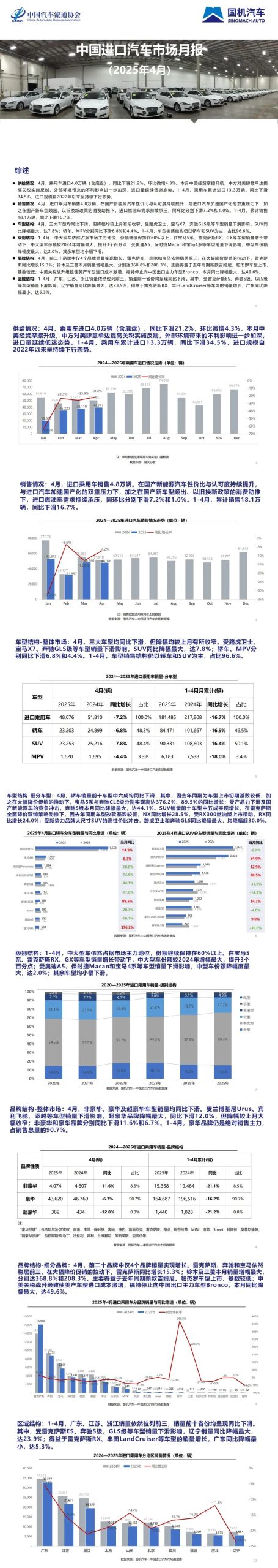 中国汽车流通协会:2025年4月中国进口汽车市场月报 更多阅读:中国汽车流通协会:2020年4月中国进口汽车市场月报国机汽车:2022年3月中国进口汽车市场月报中国汽车流通协会:2024年5月中国进口汽车市场情况2024年4月中国进口汽车市场情况中国汽车流通协会:2023年8月中国进口汽车市场情况分析中国汽车流通协会:2023年7月中国进口汽车市场情况中国汽车流通协会:2023年4月中国进口汽车市场情况国机汽车:2023年2月中国进口汽车市场情况中国汽车流通协会:2022年8月中国进口汽车市场情况分析中国汽车流通协会:2022年7月中国进口汽车市场情况中国汽车流通协会:2022年7月中国进口汽车市场情况中国汽车流通协会:2022年6月中国进口汽车市场情况分析中国汽车流通协会:2022年5月中国进口汽车市场情况中国汽车流通协会:2022年4月中国进口汽车市场情况中国汽车流通协会:2022年4月中国进口汽车市场情况分析