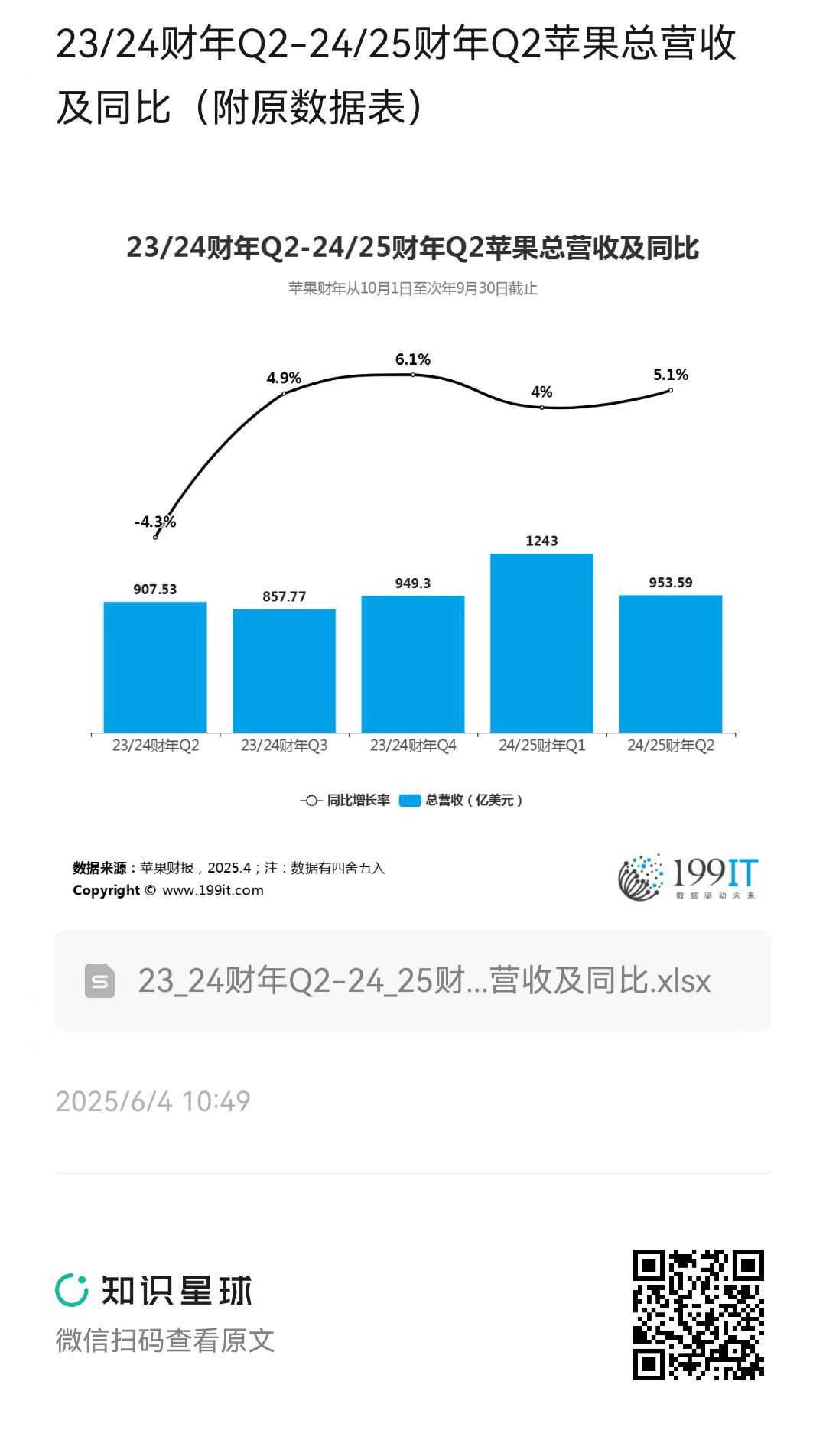 23/24财年Q2-24/25财年Q2苹果总营收及同比(附原数据表) ​​​