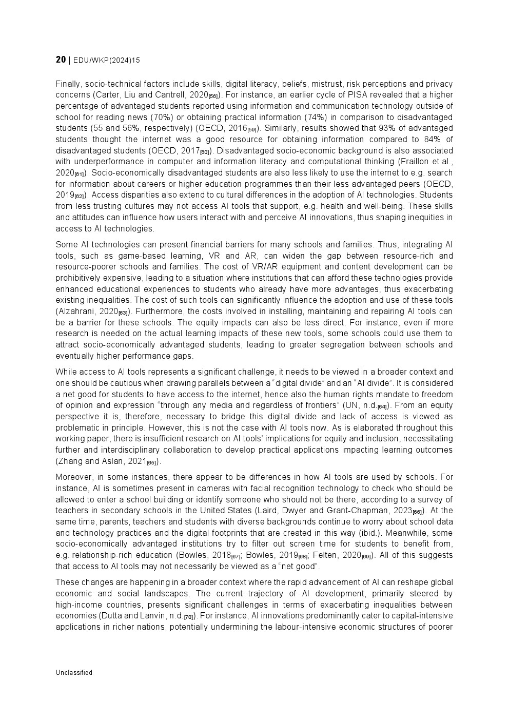 值得警惕的是数字资源差距。2022年数据显示,在OECD国家中,约30%的弱势学校学生所在学校被报告存在数字资源不足或质量低下问题,而优势学校比例不足20% 。在AI高度依赖算力、网络与高质量数据的背景下,这种差距可能演变为新的“算法鸿沟”,并通过学习效果与信息获取能力进一步固化社会分层。