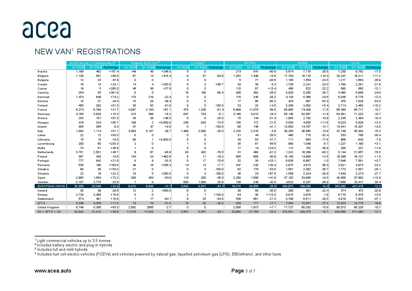 欧盟厢式货车新注册量下降12.2%,三大市场拖累整体表现:意大利跌幅最大(-15.2%),法国(-10.7%)和德国(-10.7%)紧随其后。西班牙逆势增长12.6%。