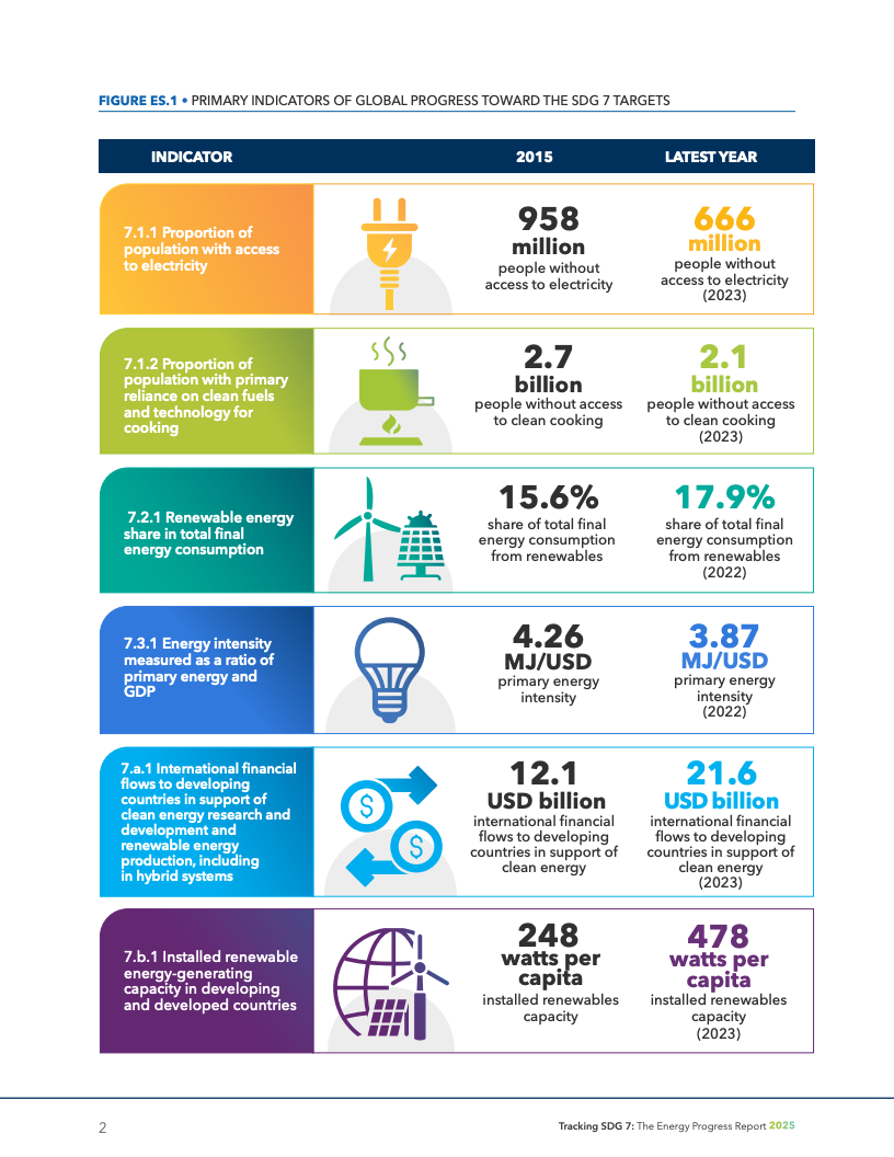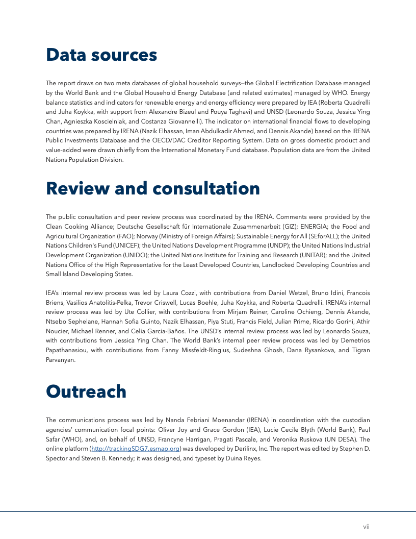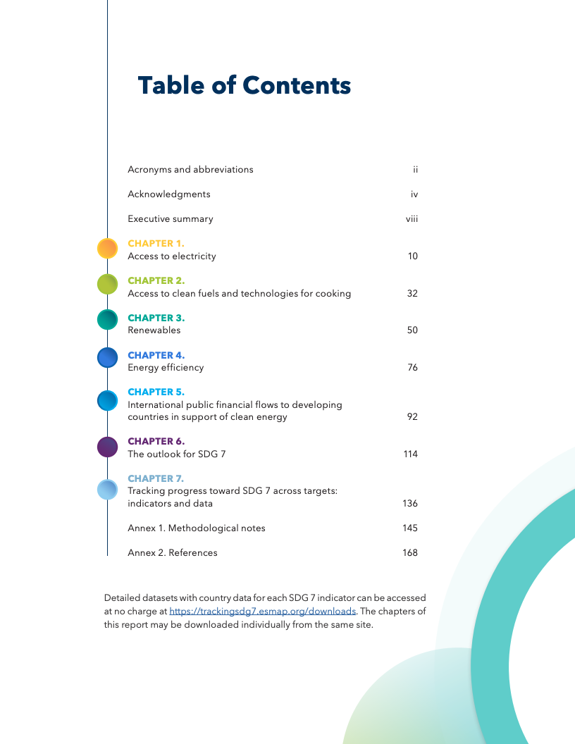这项报告的副标题为“追踪可持续发展目标7”。该目标是要确保人人获得负担得起的、可靠和可持续的现代能源。这份报告由可持续发展目标7的五家托管机构共同完成,包括国际能源署、国际可再生能源署、联合国统计司、世界银行和世界卫生组织。