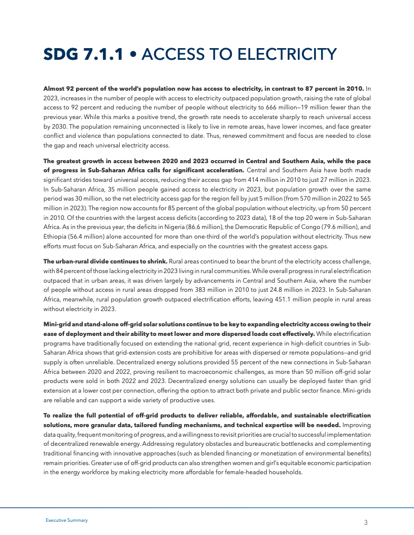 为巩固现有成果,并避免全球市场潜在风险导致电力与清洁烹饪普及率再度倒退,报告呼吁加强公私部门的国际合作,扩大对发展中国家,尤其是撒哈拉以南非洲地区的资金支持。