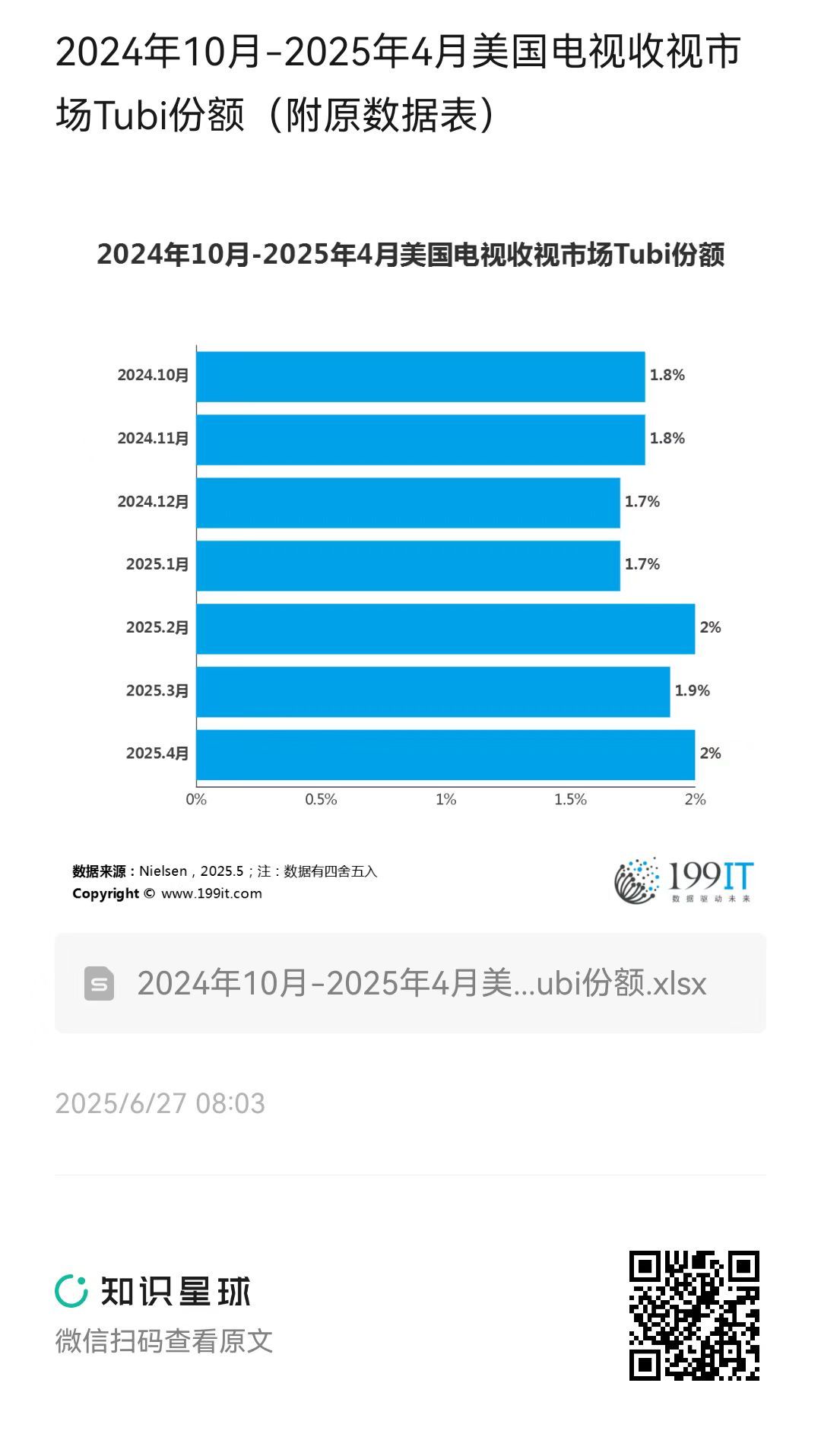 2024年10月-2025年4月美国电视收视市场Tubi份额(附原数据表) ​​​