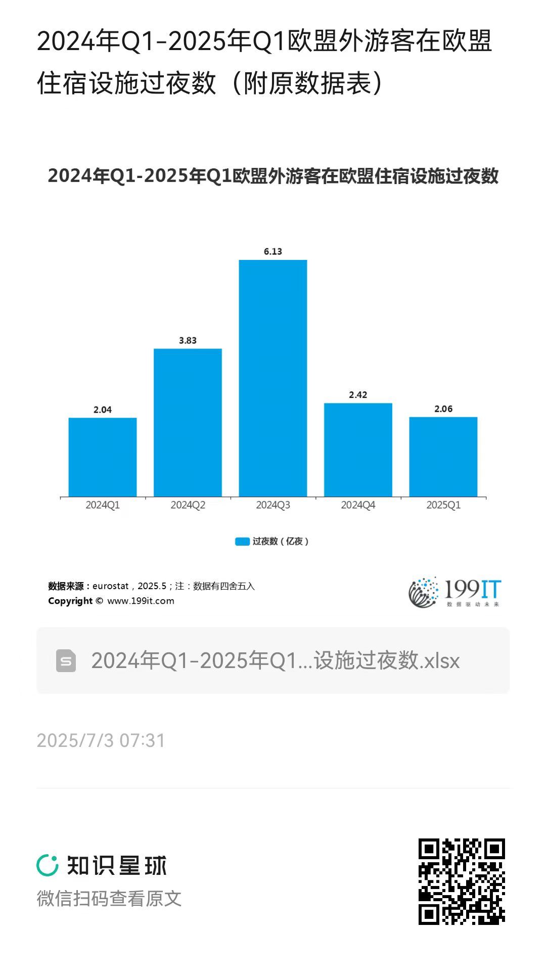 2024年Q1-2025年Q1欧盟外游客在欧盟住宿设施过夜数(附原数据表) ​​​