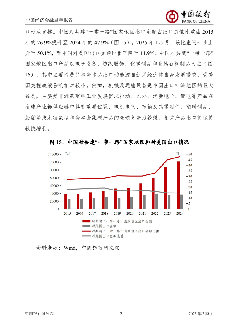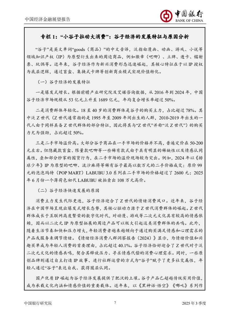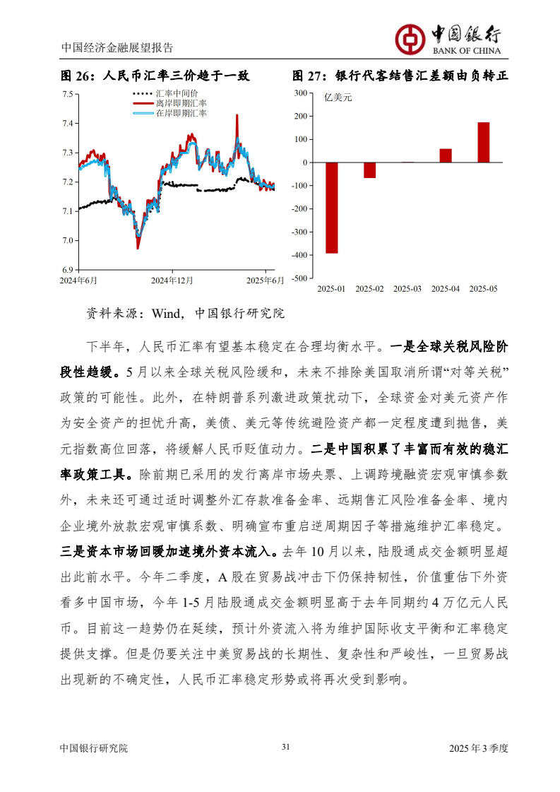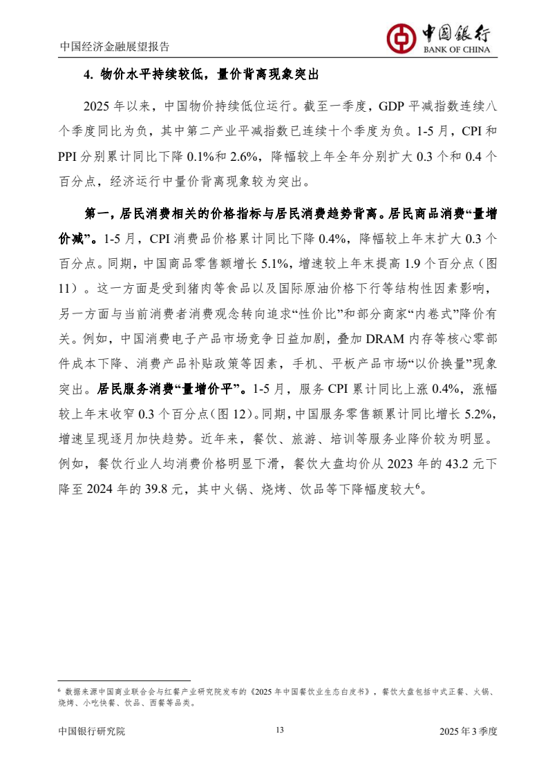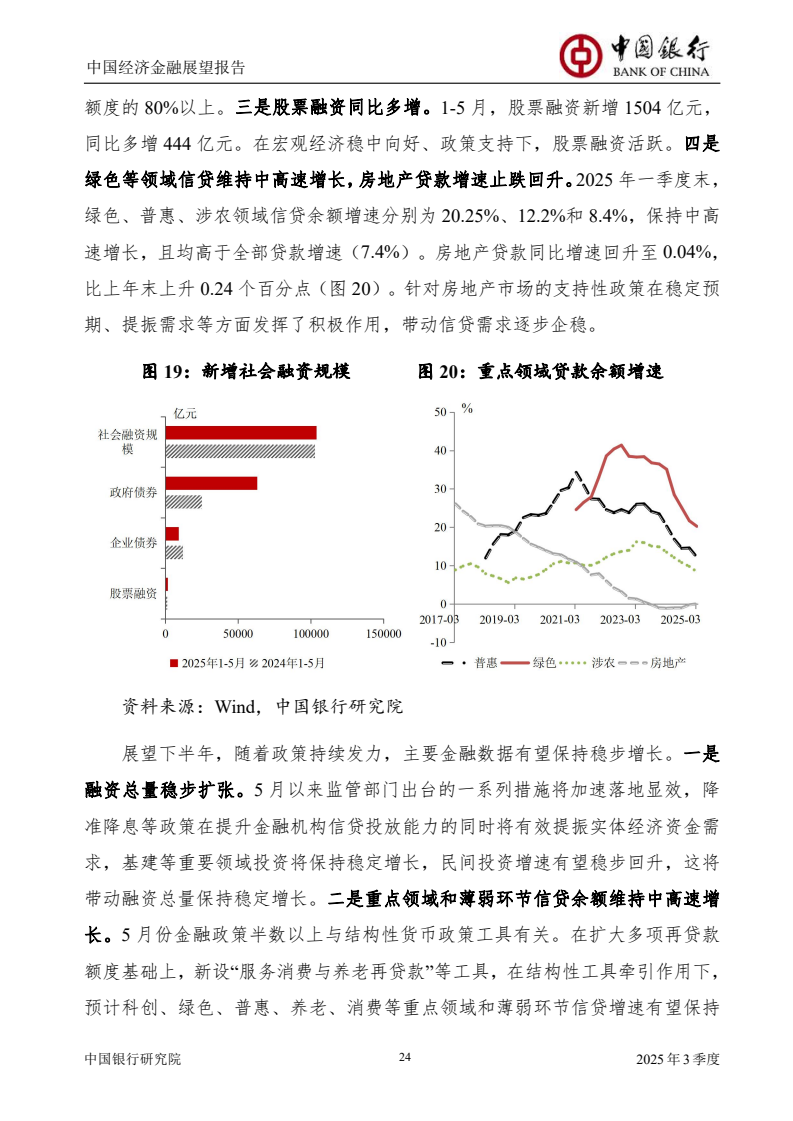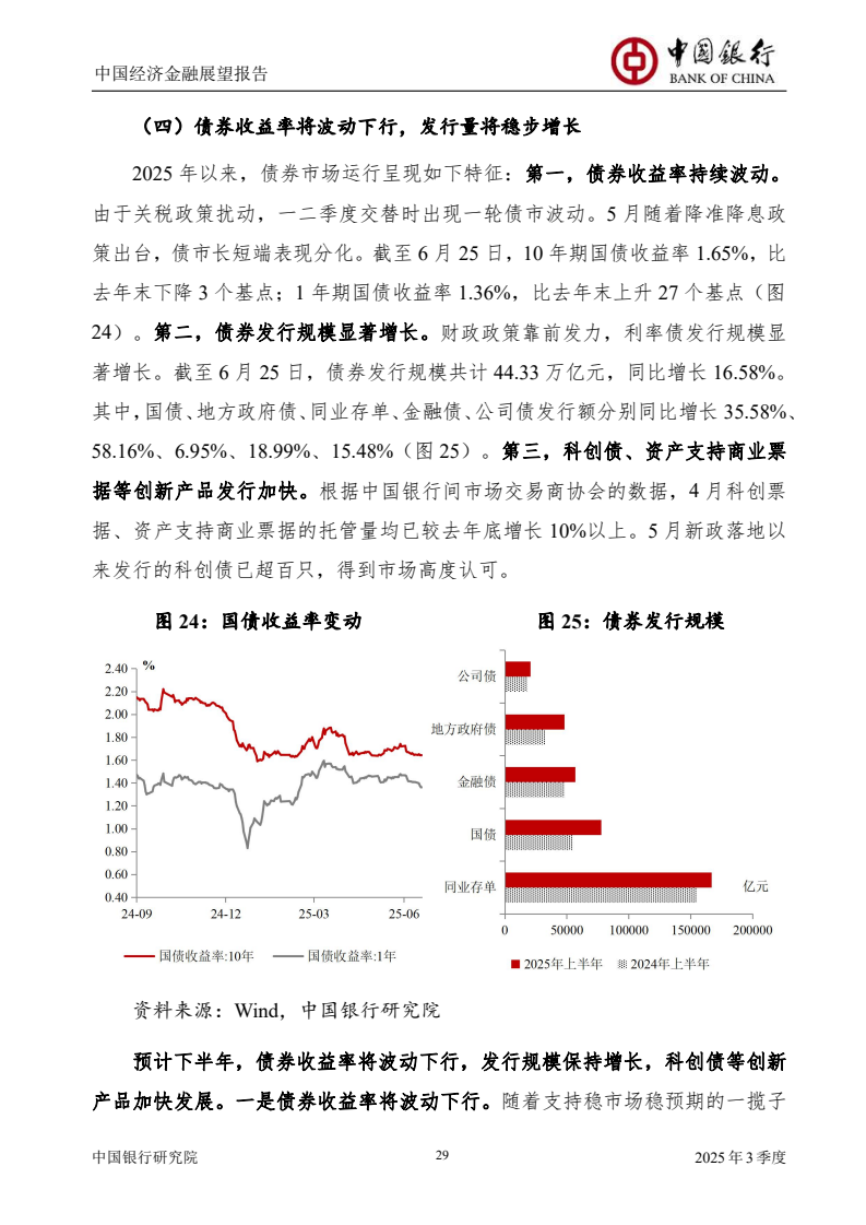 2025年上半年,面对急剧变化的外部环境,中国加紧实施更加积极有为的逆周期调控政策,内需表现较为稳定,出口好于预期,工业生产较快增长,经济总体平稳运行,预计上半年 GDP 增长5.4%左右。其中,受外部冲击、房地产市场再度转弱等因素影响,二季度经济景气度有所回落,预计GDP增长5.3%左右,增速较一季度回落0.1个百分点左右。
