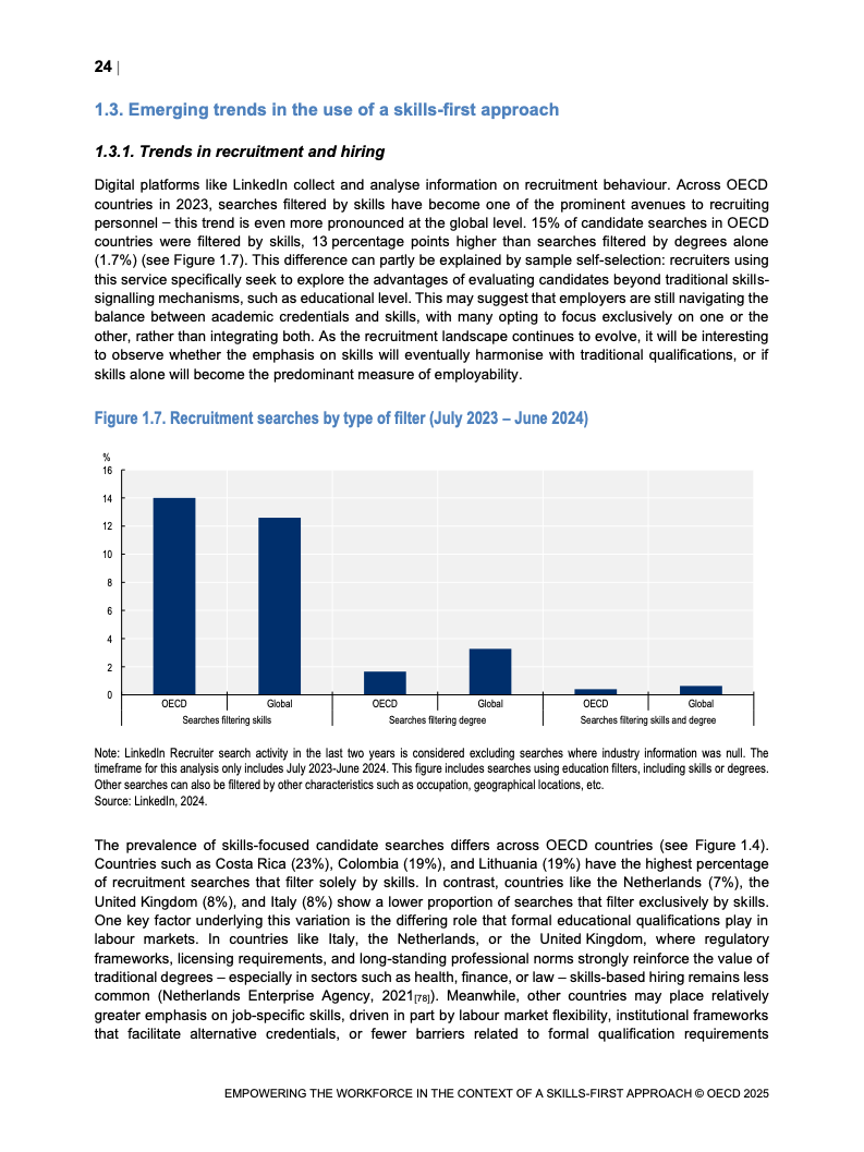 技能优先即招聘中优先考量个人技能与能力。 而非传统学历或职位头衔。 报告分析了基于技能招聘等新兴趋势。 揭示了各国和行业实践的差异性与原因。