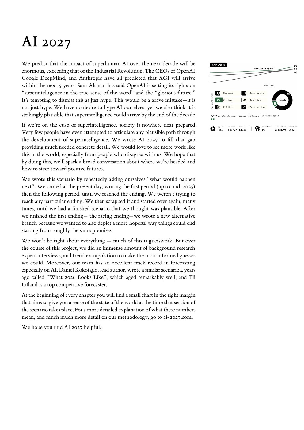 如果人类正处在超级智能的临界点,那么社会还远未做好准备。几乎没有人尝试过为超级智能的发展路径提出任何可信的方案。报告正是为了填补这一空白,提供亟需的具体细节。我们期待看到更多类似的研究,特别是来自持不同观点人士的论述。希望通过这项工作,能够引发关于人类未来走向及如何迈向积极未来的广泛讨论。