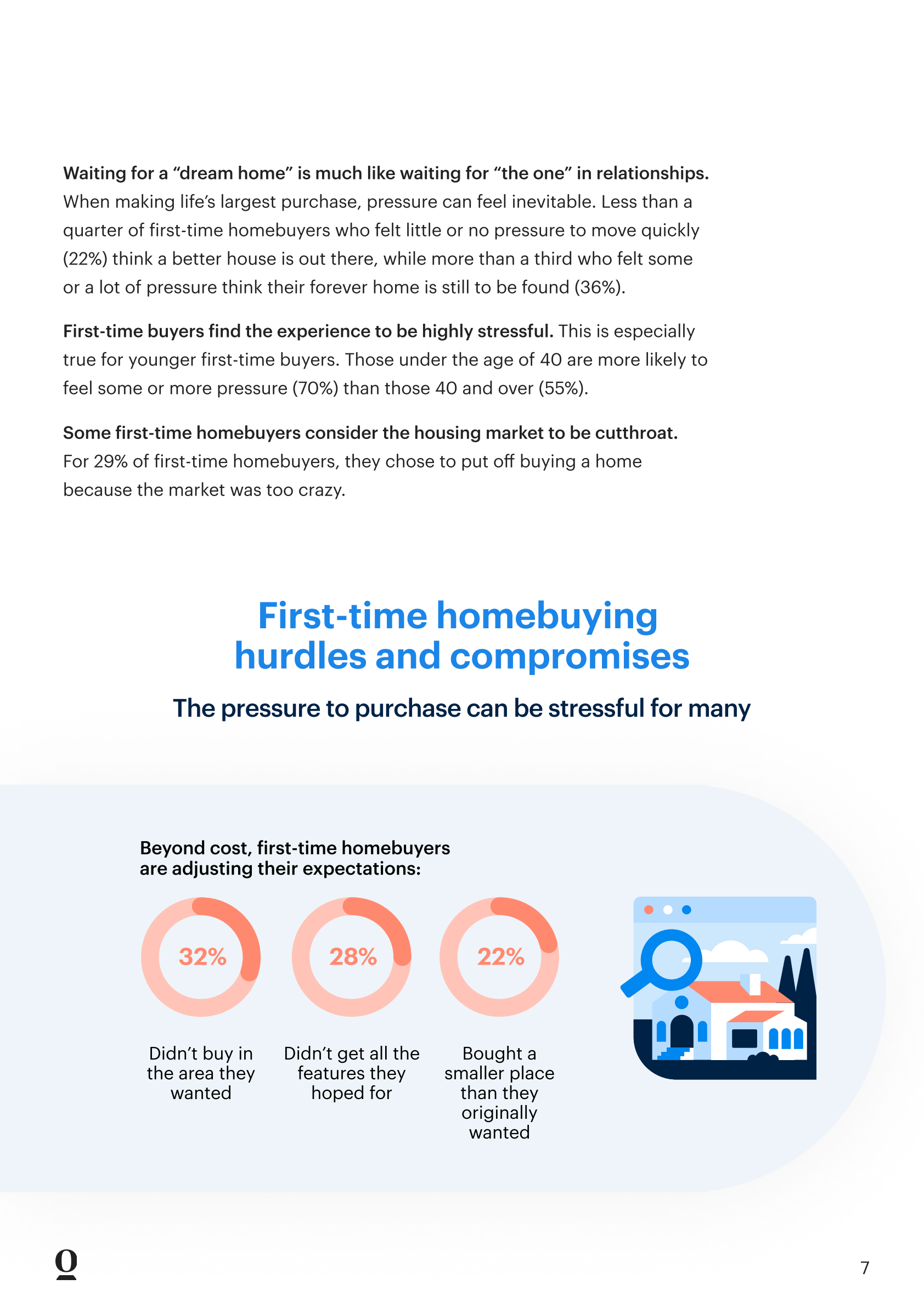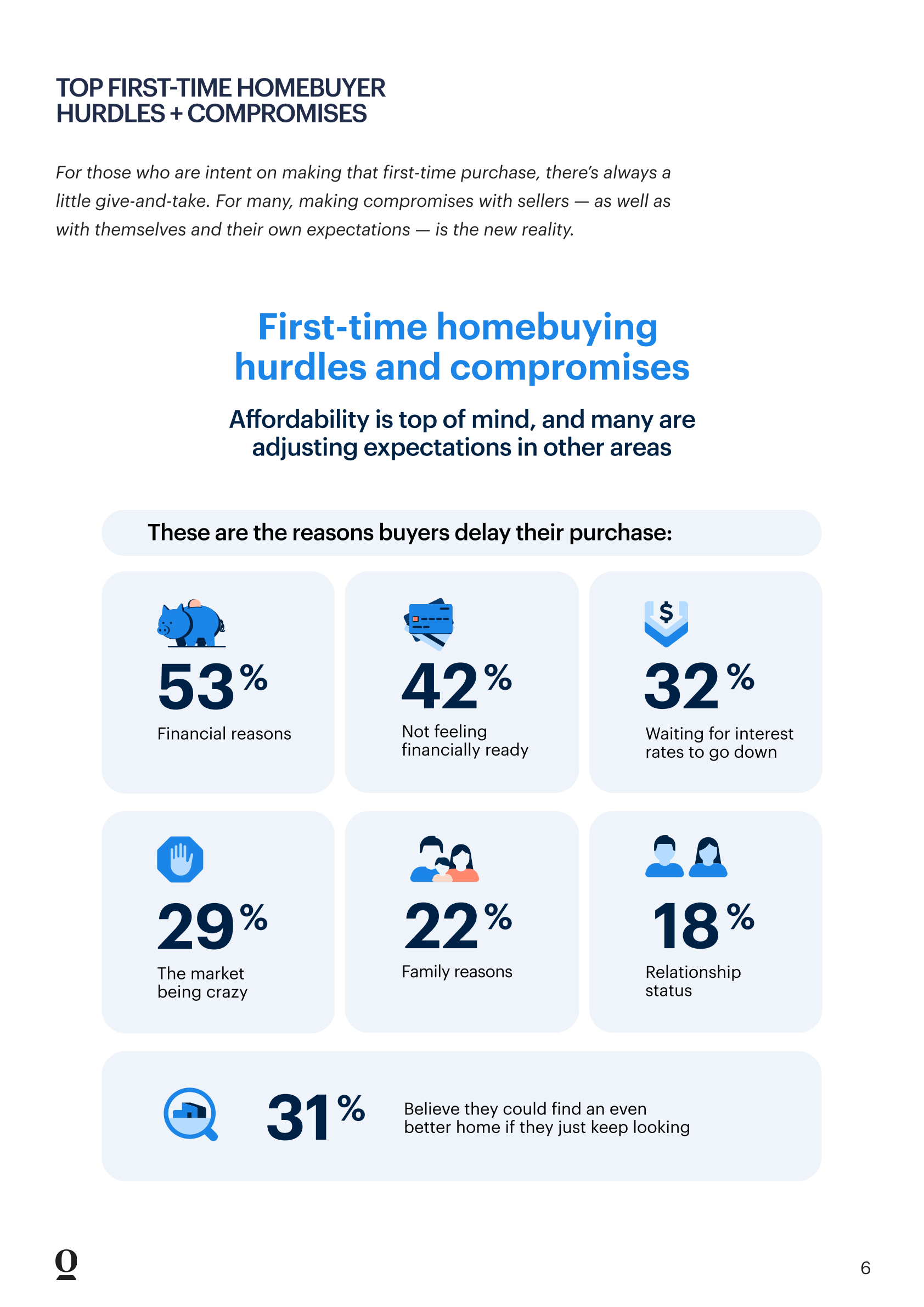 财务问题是推迟购房计划的首要障碍,53%的受访者因此却步。具体来看,42%的人感觉自身财务状况尚未准备就绪,而32%的人则在等待利率下行。市场的高度不确定性(29%)也让许多人选择观望。为了达成交易,购房者不得不做出妥协,其中32%的人未能在心仪地段购房,28%放弃了部分期望的房屋功能,22%则接受了比预期更小的居住面积。
