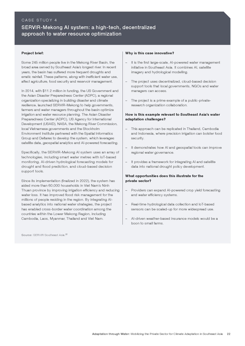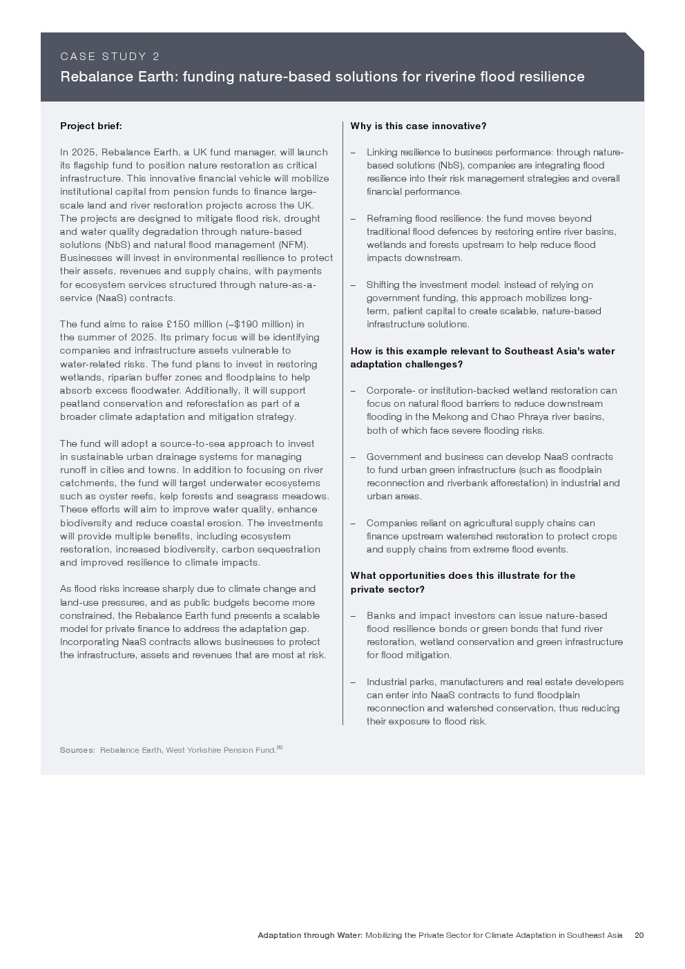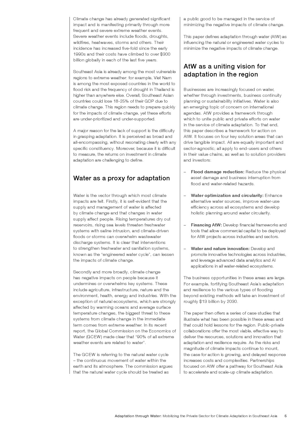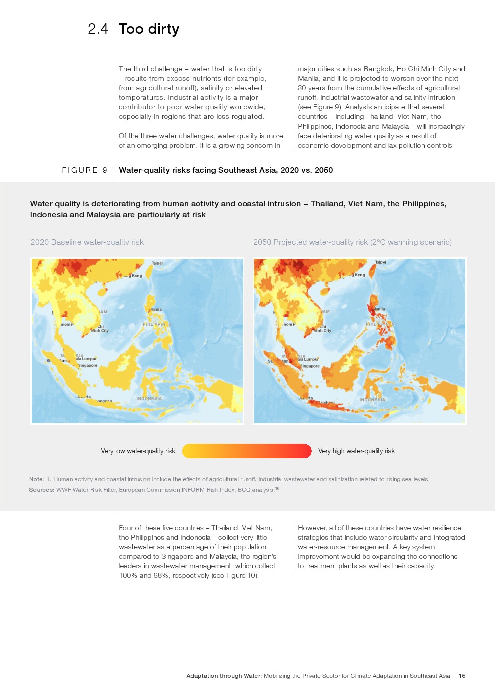 东南亚已是全球最易受极端天气影响的地区之一:例如,越南是全球洪水风险暴露度最高的国家之一,而泰国的干旱频率高于其他任何地区。总体而言,东南亚国家可能因气候变化损失18%-25%的GDP。该地区亟需加快应对气候变化影响的准备,但目前这些努力仍未得到足够重视和支持。