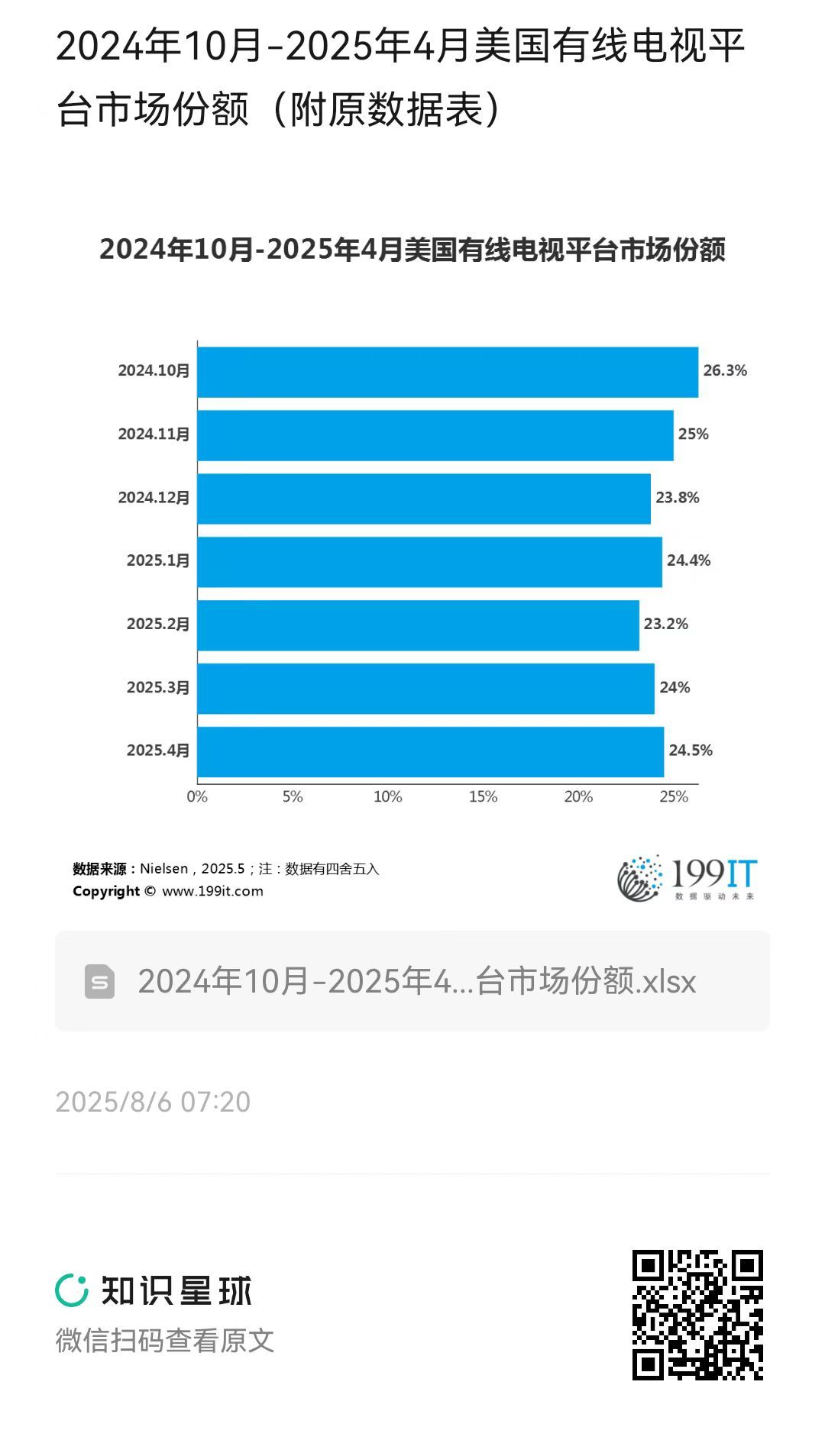 2024年10月-2025年4月美国有线电视平台市场份额(附原数据表) ​​​