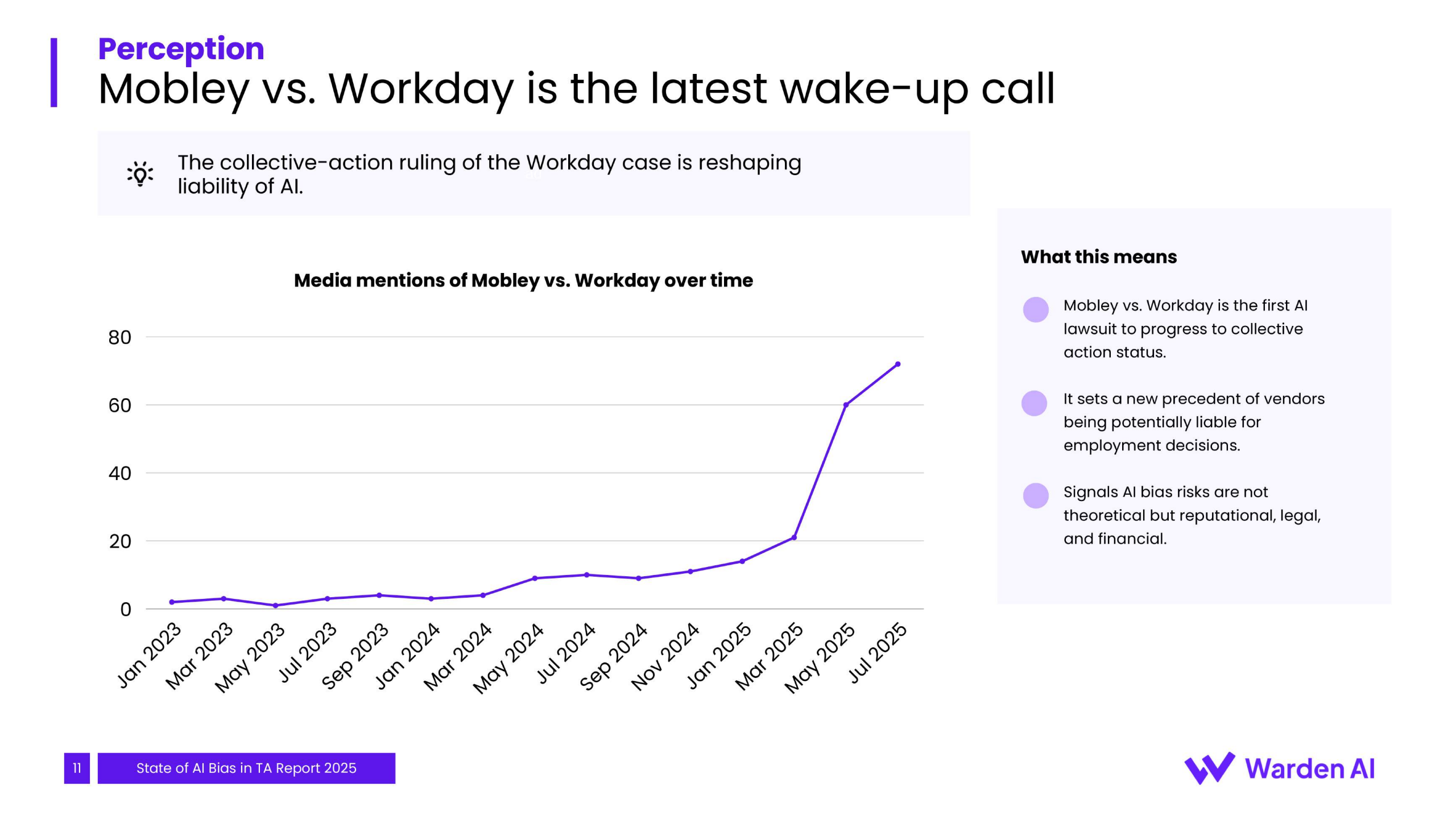 未来趋势表明,随着纽约市、欧盟等地的AI监管法规相继生效,企业面临的合规压力将急剧增加。目前仅有约42%的供应商为纽约市法规做好了准备,市场合规成熟度参差不齐。这预示着招聘AI的关注点正从“是否存在偏见”转向“如何进行治理与验证”。企业的采购决策将日益依赖于供应商提供的第三方审计报告与持续监控能力,偏见风险的责任正从技术供应商单方转向企业与供应商的共担模式。