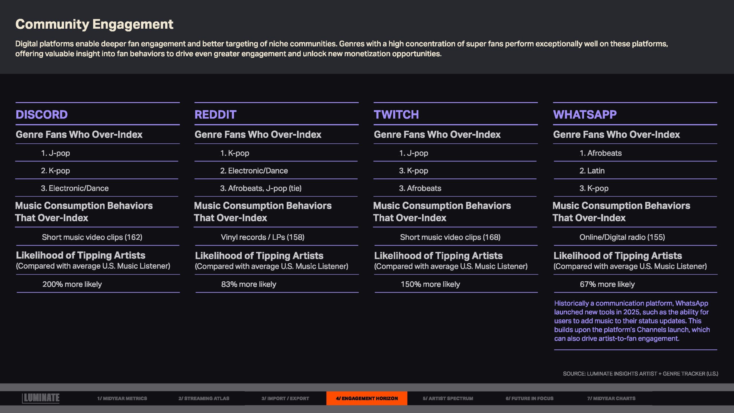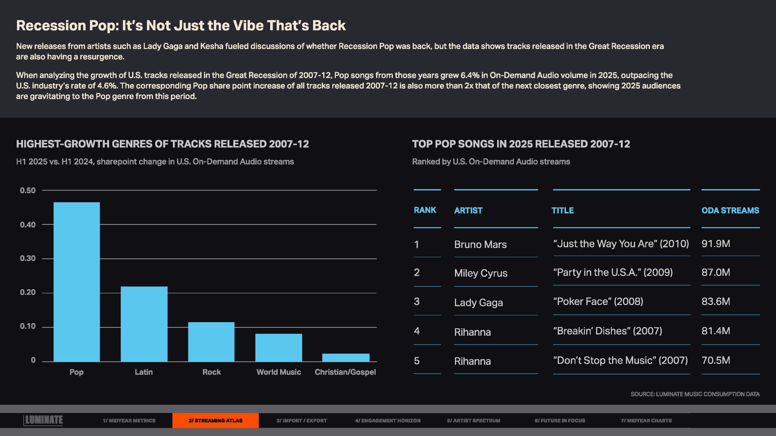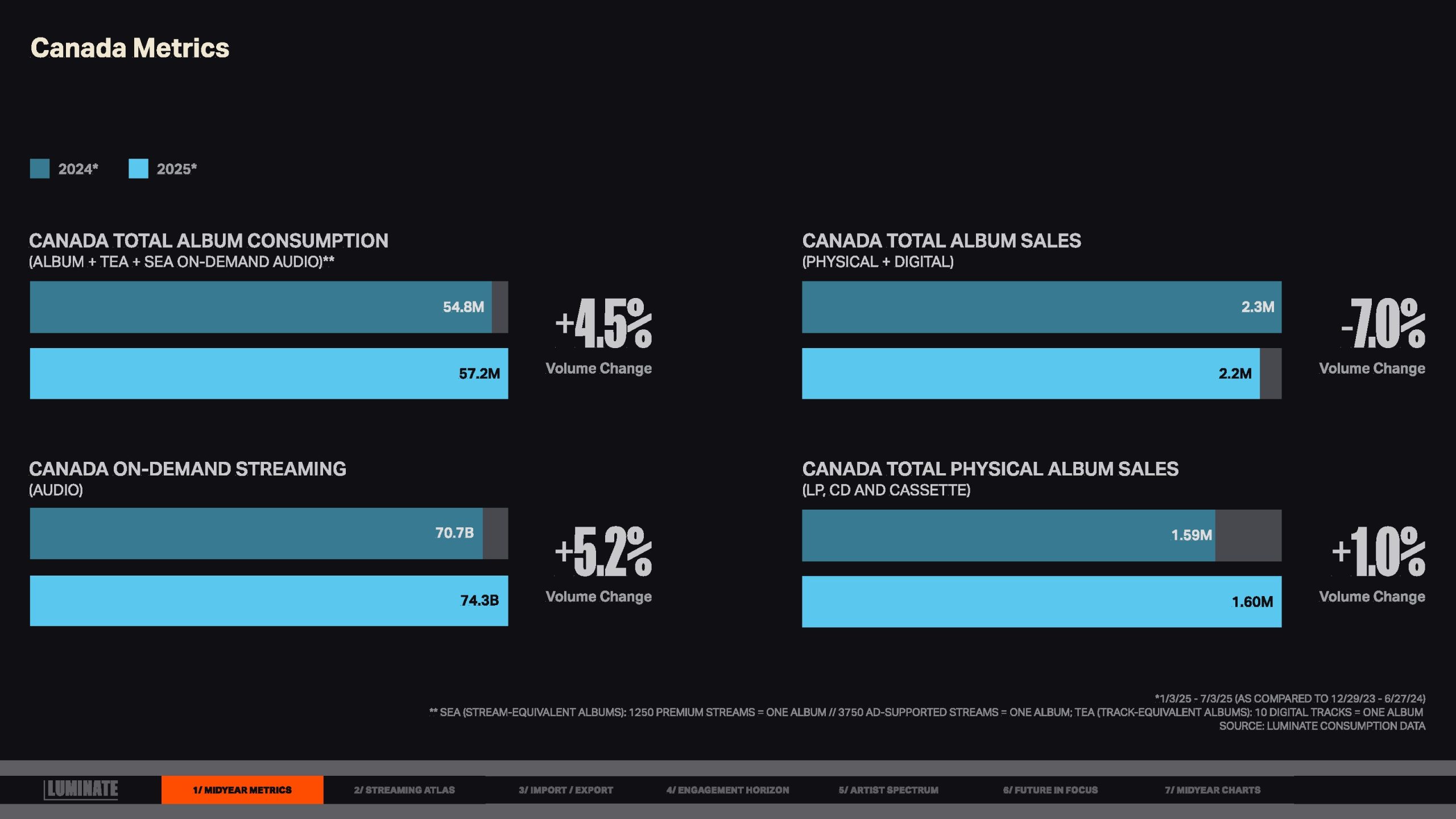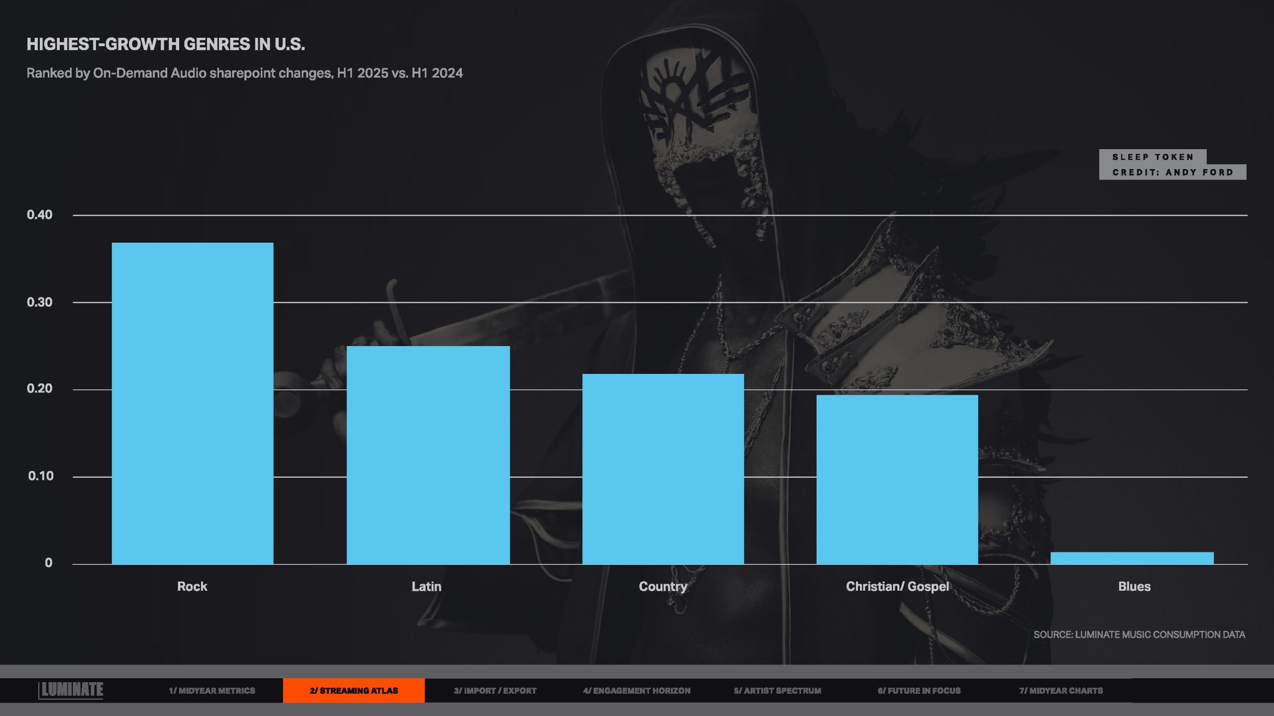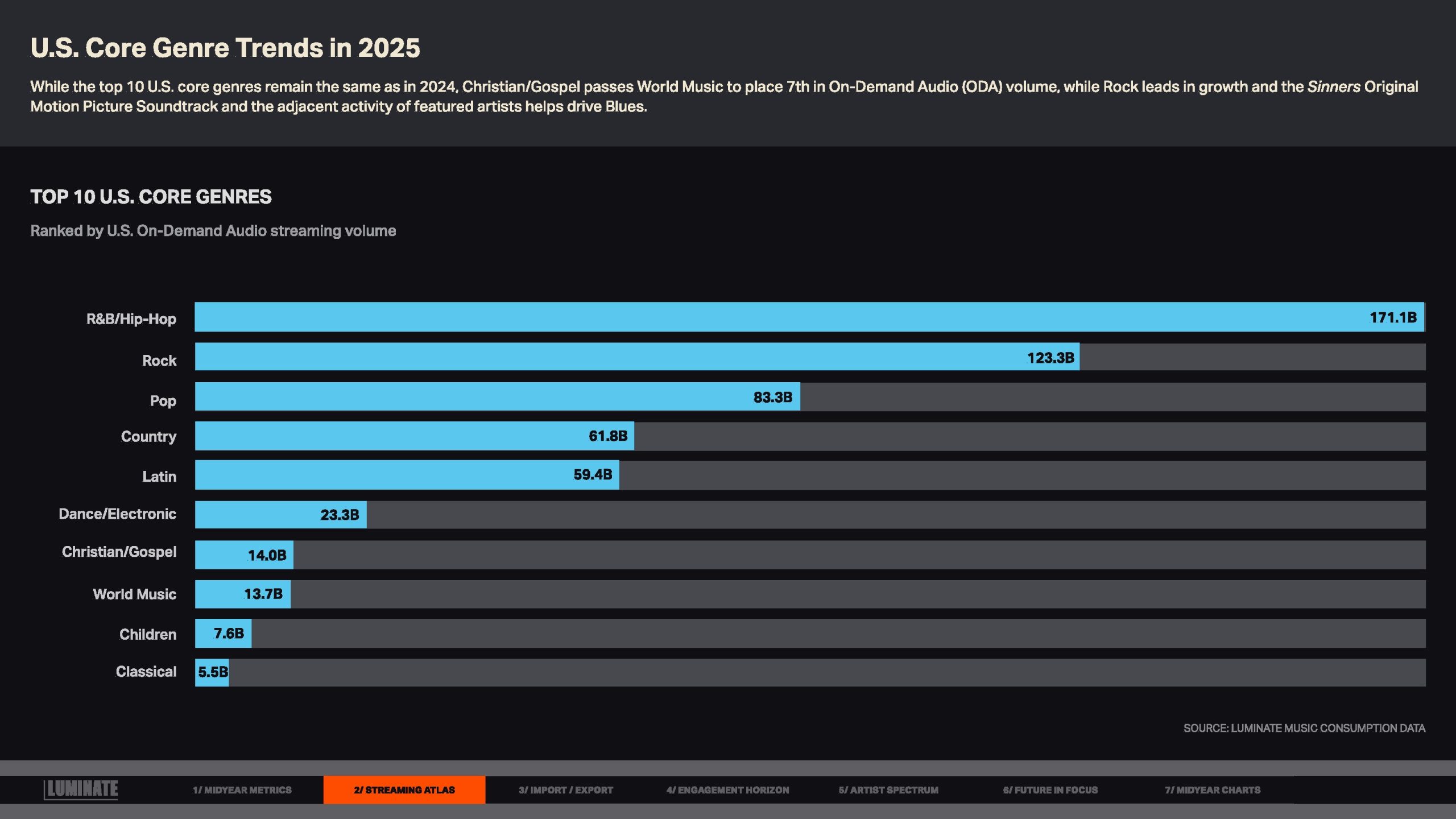 Luminate发布了“2025年年中音乐报告”,将关注焦点坚定锁定在音乐行业增长与颠覆的交汇点。过去六个月已在这两方面呈现丰富动态。