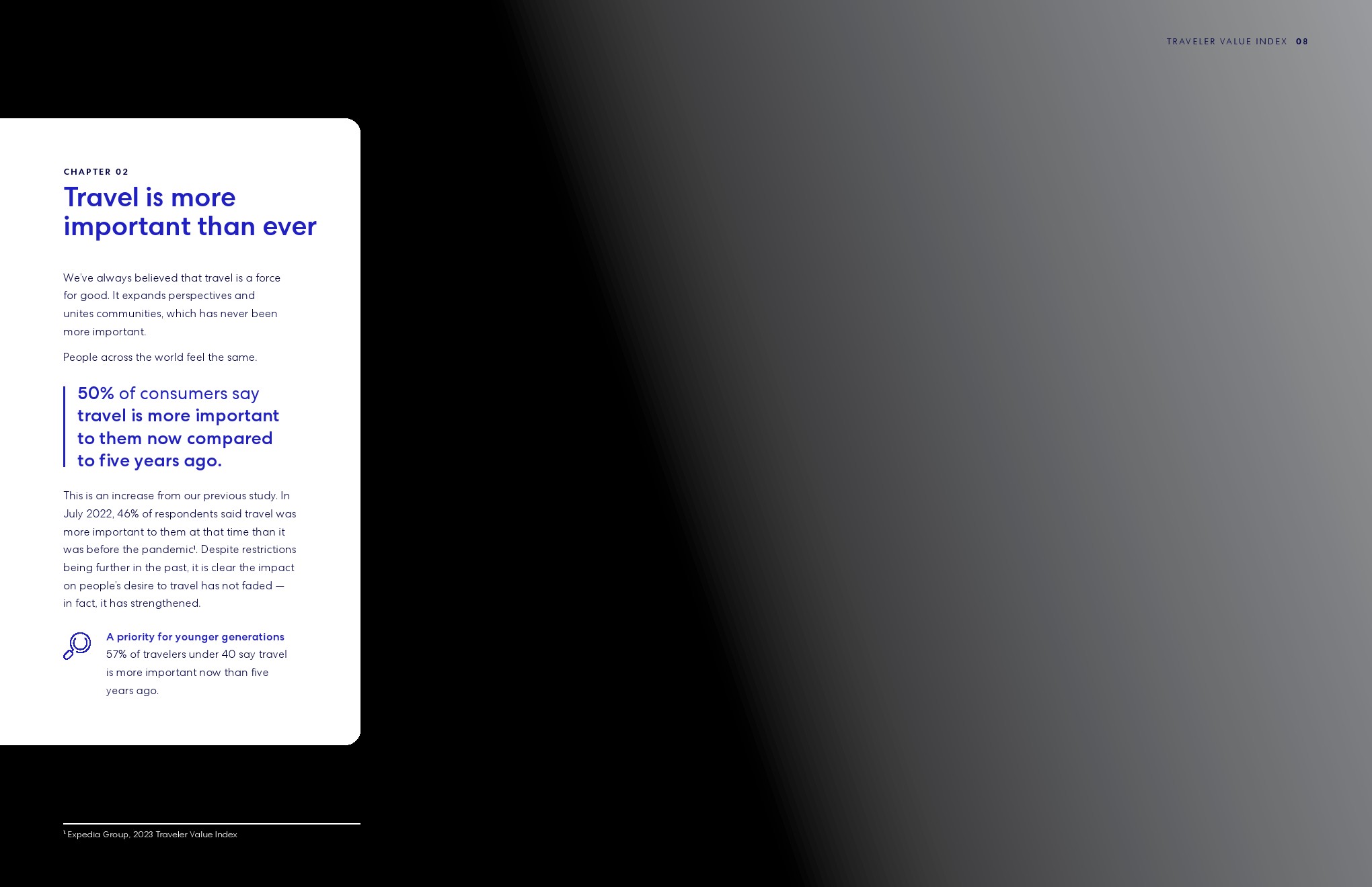 这一数据较之前的调研有所上升。2022年7月,46%的受访者表示当时旅行对他们的重要性已超过疫情前水平。尽管出行限制已成为过去式,但显然人们对旅行的渴望并未消退——事实上更强烈了。