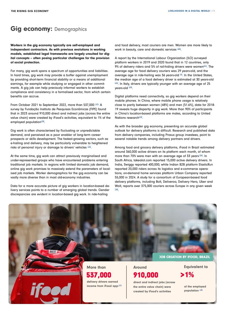 零工经济的参与者画像清晰,以年轻男性为主导。国际劳工组织数据显示,外卖骑手平均年龄29岁,而女性从业者占比不足一成。然而,其创造的经济价值不容小觑。以巴西的iFood为例,其生态系统在2023年创造了约91万个直接与间接就业岗位,相当于该国就业总人口的1%以上,凸显了平台在吸纳劳动力方面的巨大作用。
