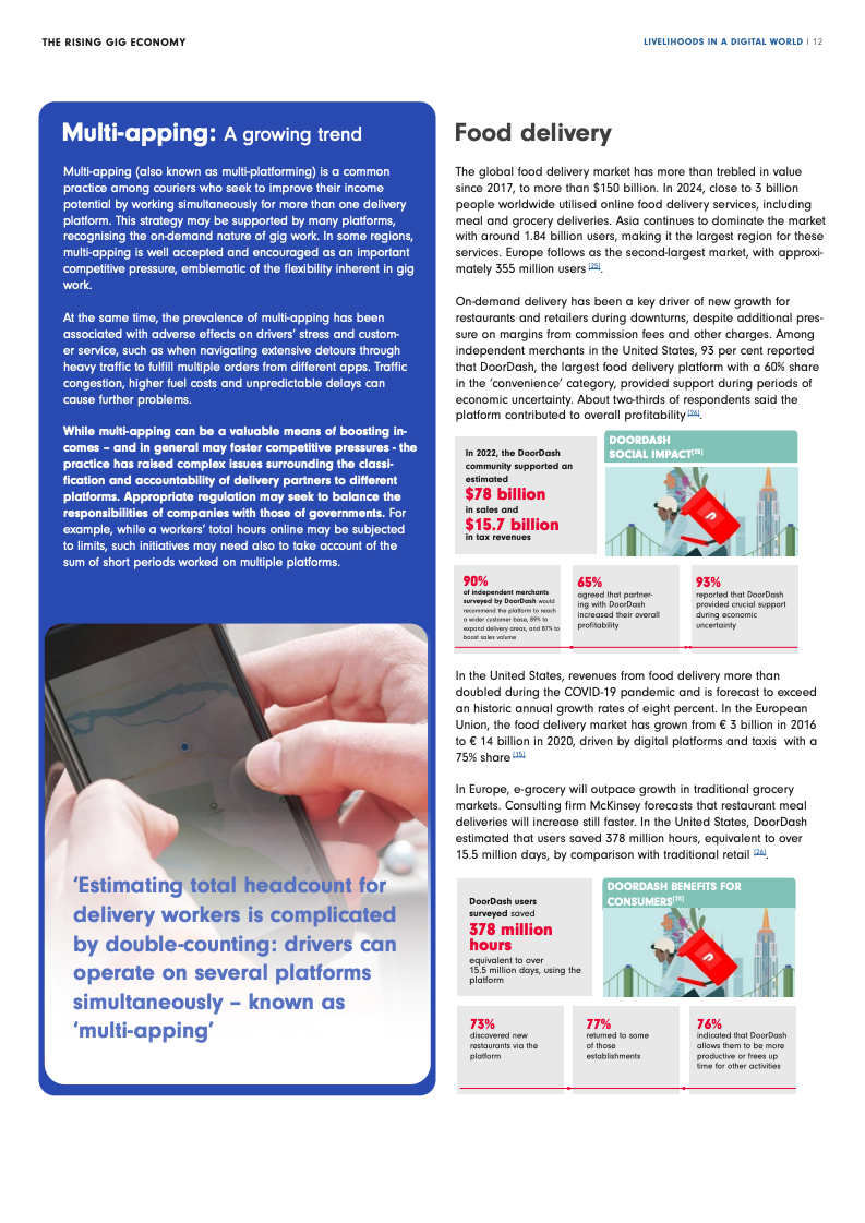 零工经济已从边缘走向主流,成为全球经济版图中的重要力量。数据显示,全球在线外卖市场规模自2017年以来增长两倍,突破1500亿美元,预计到2024年将服务近30亿用户。这种由数字平台驱动的新业态,在重塑消费习惯的同时,也深刻改变了劳动力的构成与未来。