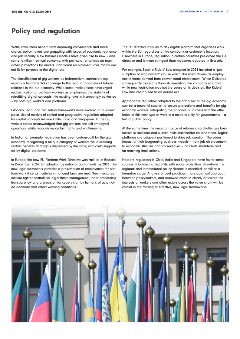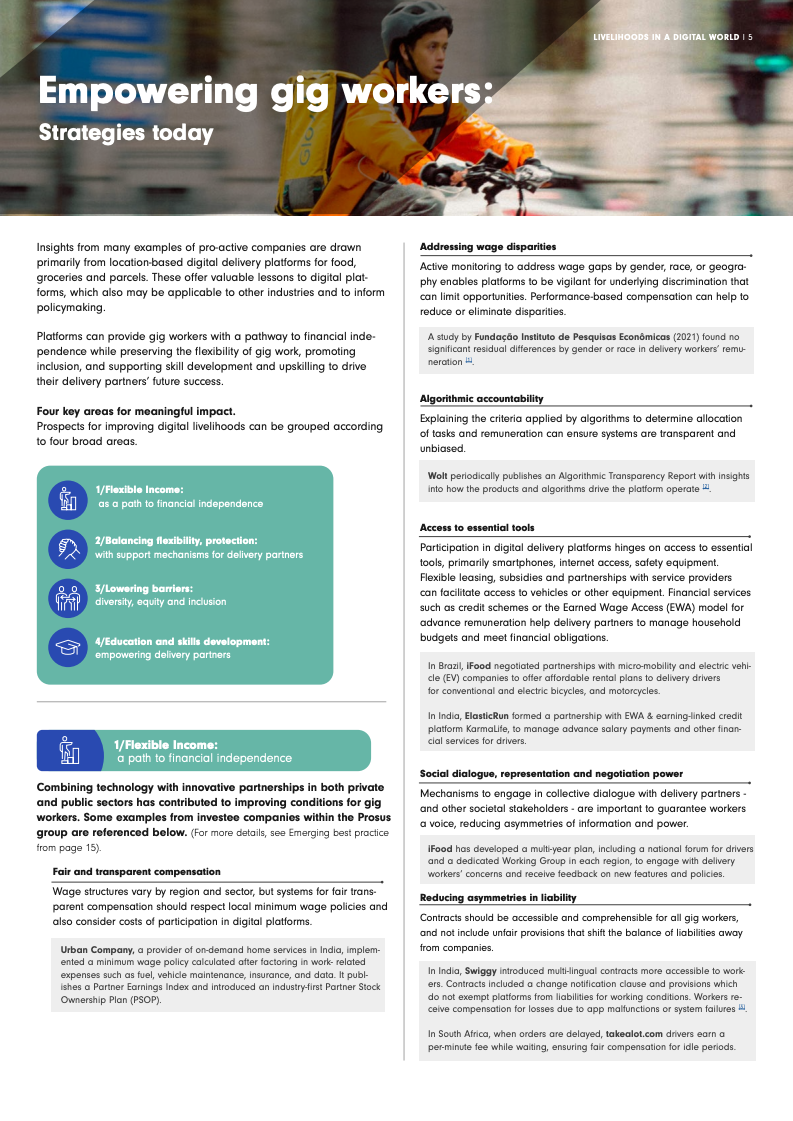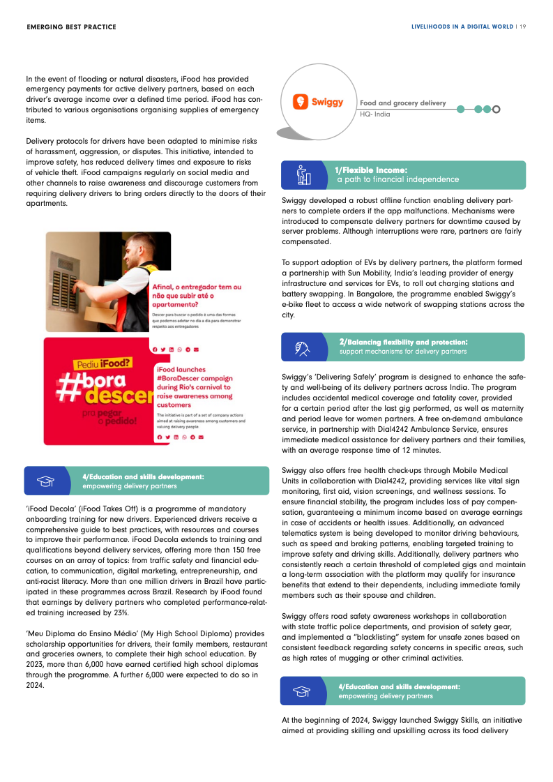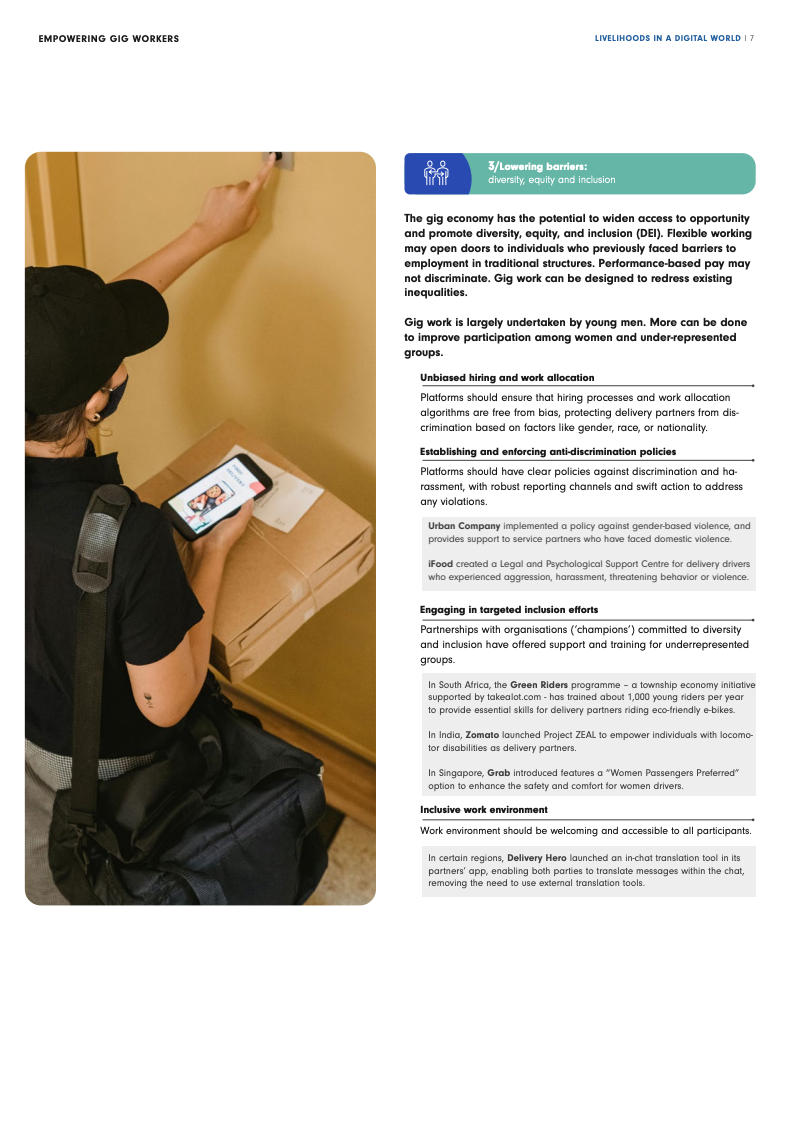 灵活性与保障之间的平衡,是零工经济的核心议题。平台企业正从单纯的技术中介,转向更积极的生态建设者。例如,印度Urban Company推行了保障最低时薪的政策,而Swiggy则提供多语言合同以提升透明度。此外,提供保险、技能培训(如Delivery Hero的在线课程)和职业发展路径,正成为平台留住劳动力的关键差异化策略。