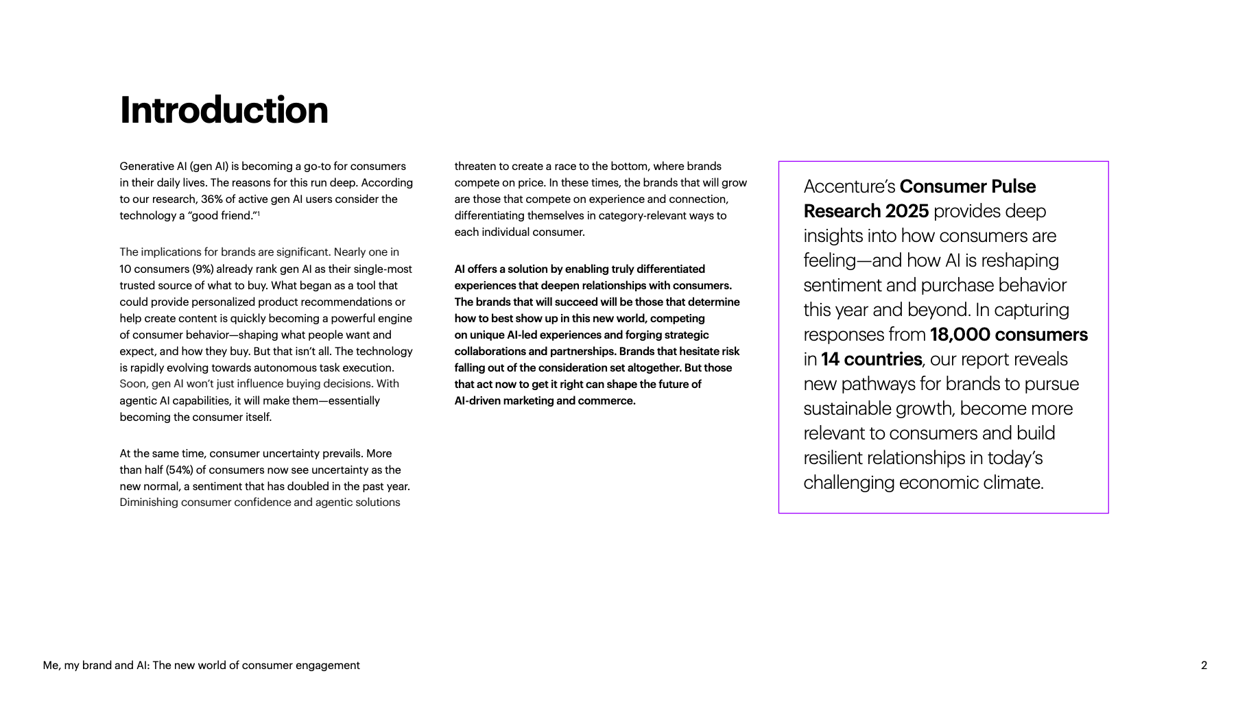 生成式人工智能正深刻重塑消费者与品牌的互动范式,其应用已非浅尝辄止。数据显示,72%的消费者已定期使用生成式AI工具,凸显其在日常生活中的高渗透率,标志着消费者行为模式的结构性变迁。