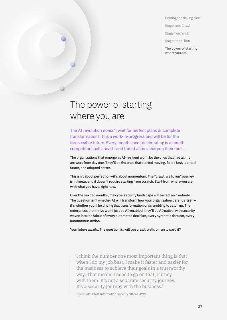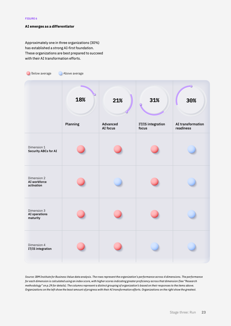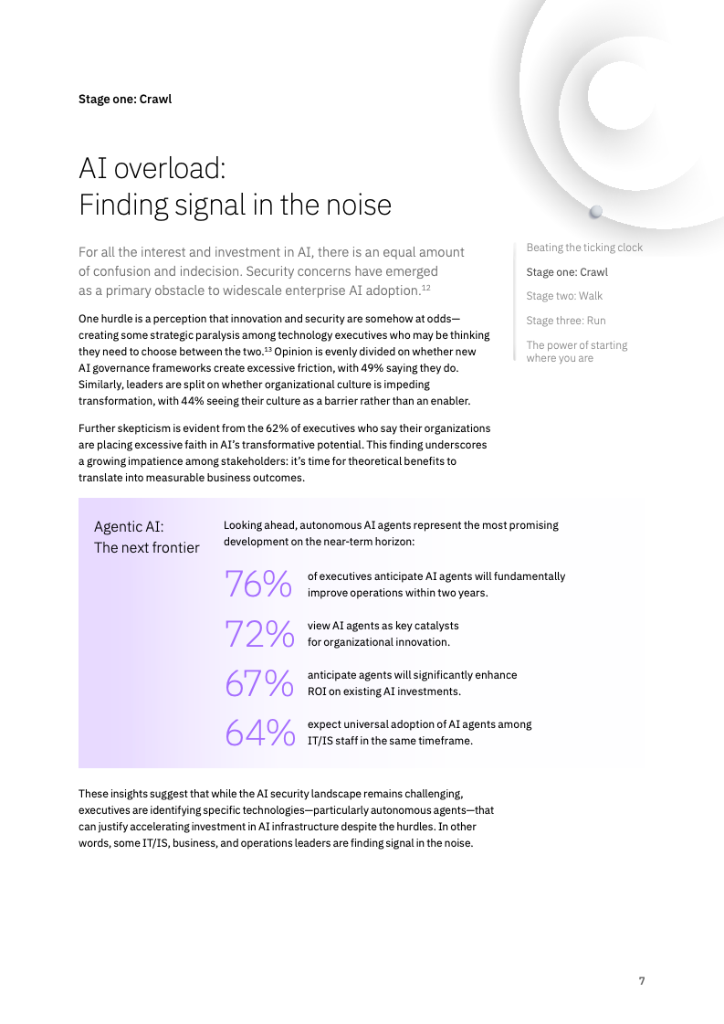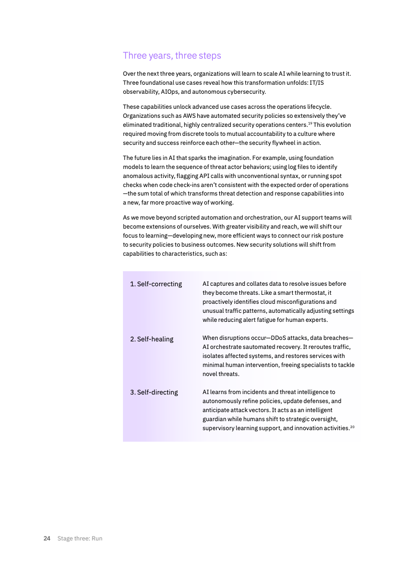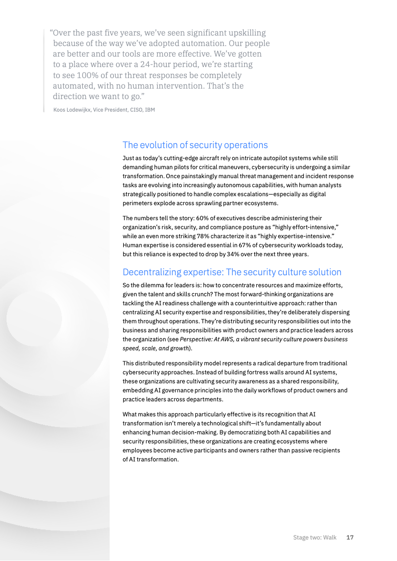 人工智能正重塑网络安全格局,未来36个月将是关键分水岭。调研数据显示,企业在AI安全应用上呈现三级分化:18%的企业处于“爬行”阶段,AI应用零散;52%进入“行走”阶段,开始系统性整合;而30%的领跑者已迈入“奔跑”阶段,构建了高度自治的安全运营体系。这一结构揭示了市场成熟度的不均衡分布。