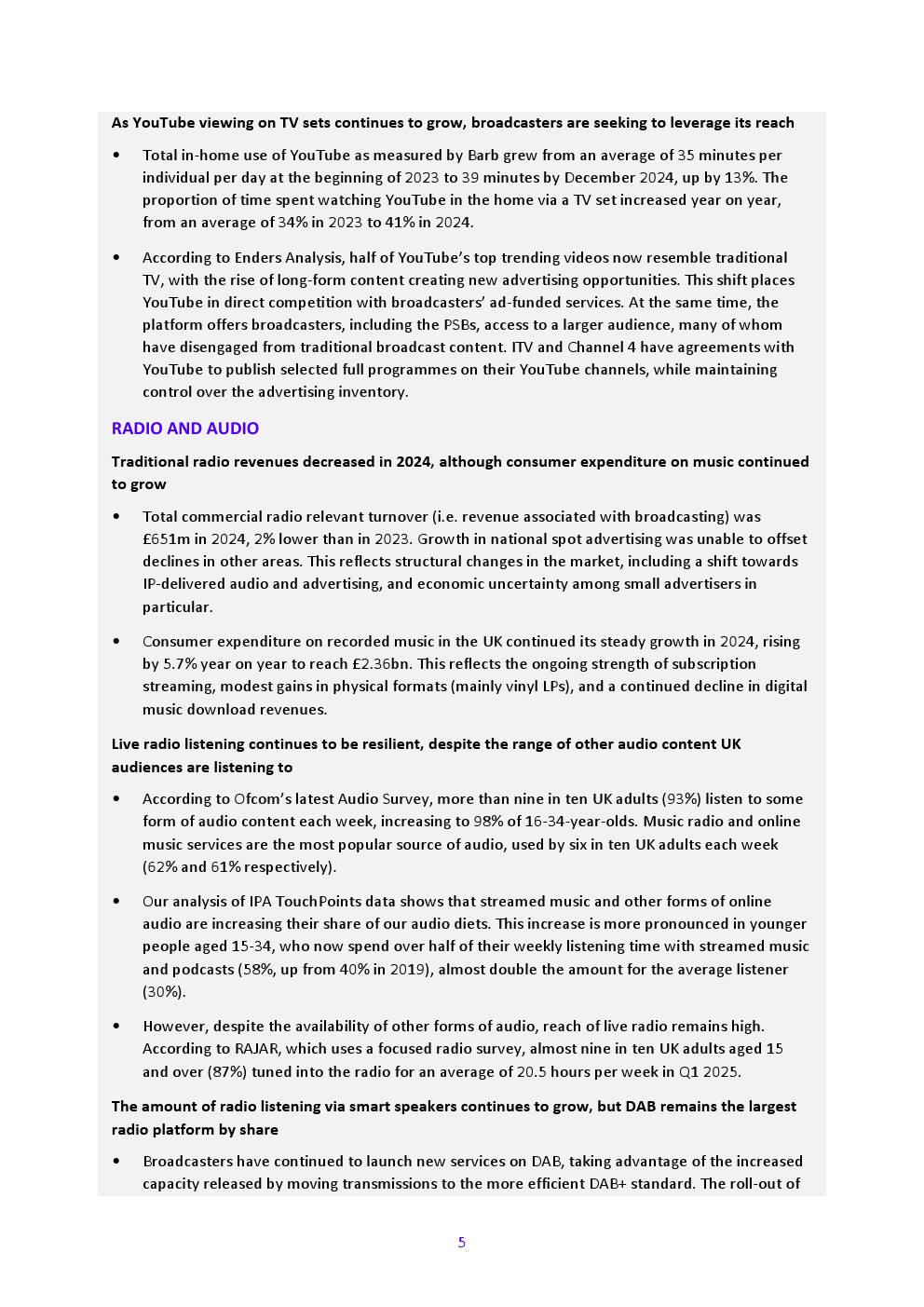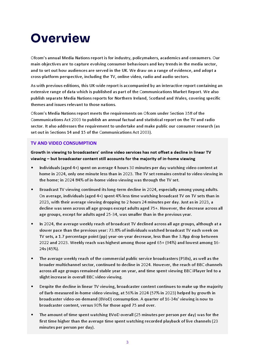 Ofcom发布了“2025年英国媒体报告”,面向行业、政策制定者、学者和消费者。报告的主要目标是捕捉媒体行业不断变化的消费者行为和关键趋势,并阐述英国如何服务受众。报告借鉴一系列证据,采用跨平台视角,包括电视、在线视频、广播和音频行业。