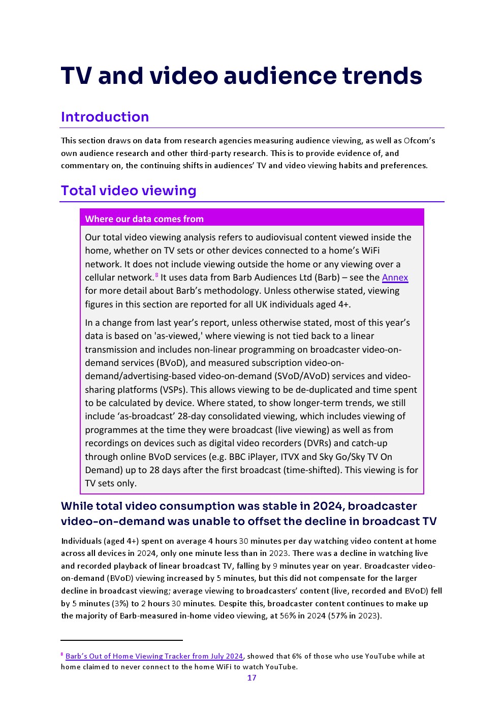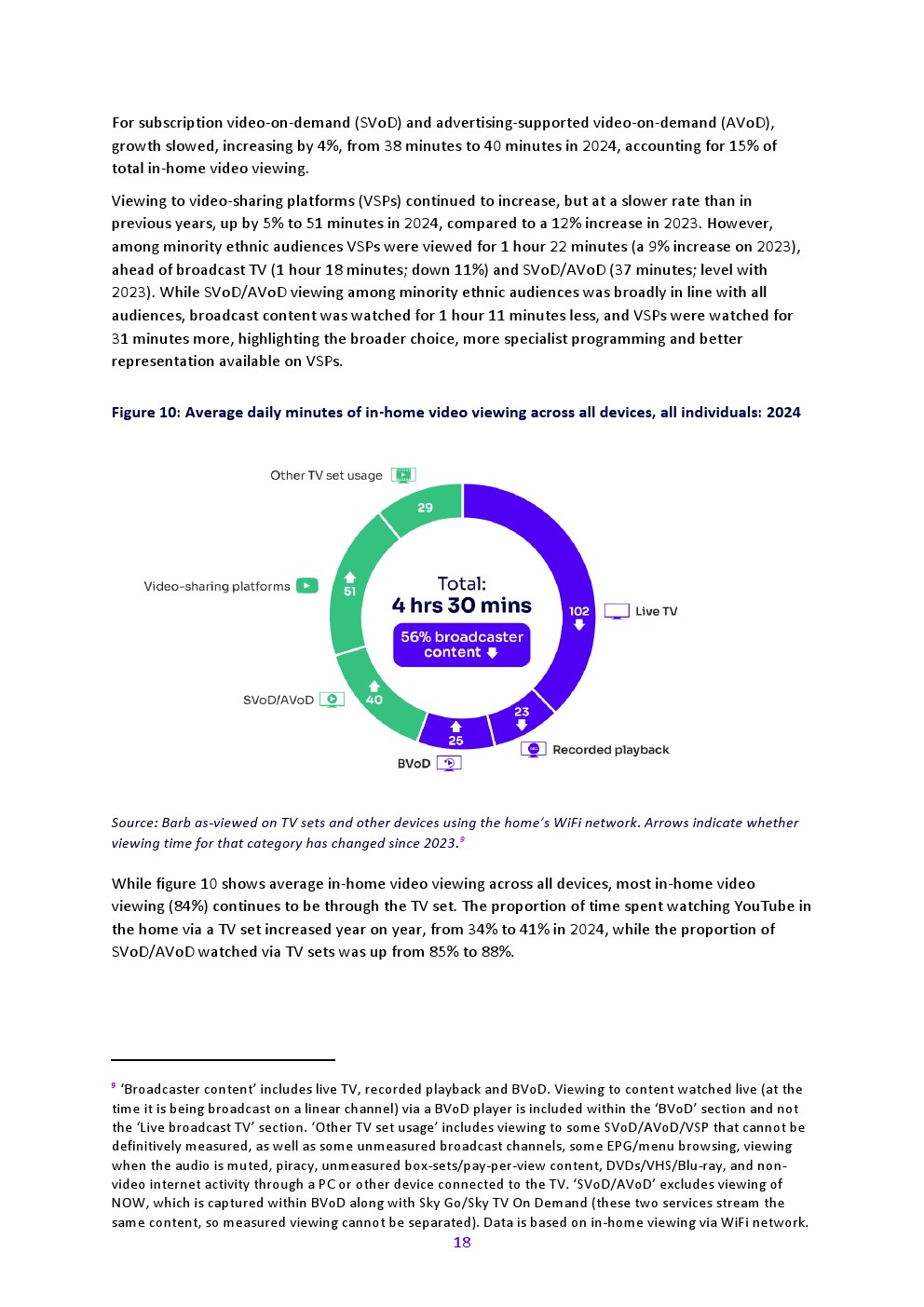 广播公司在线视频服务的观看增长未能抵消传统电视观看量的下降——但广播公司内容仍占家庭观看的大部分。