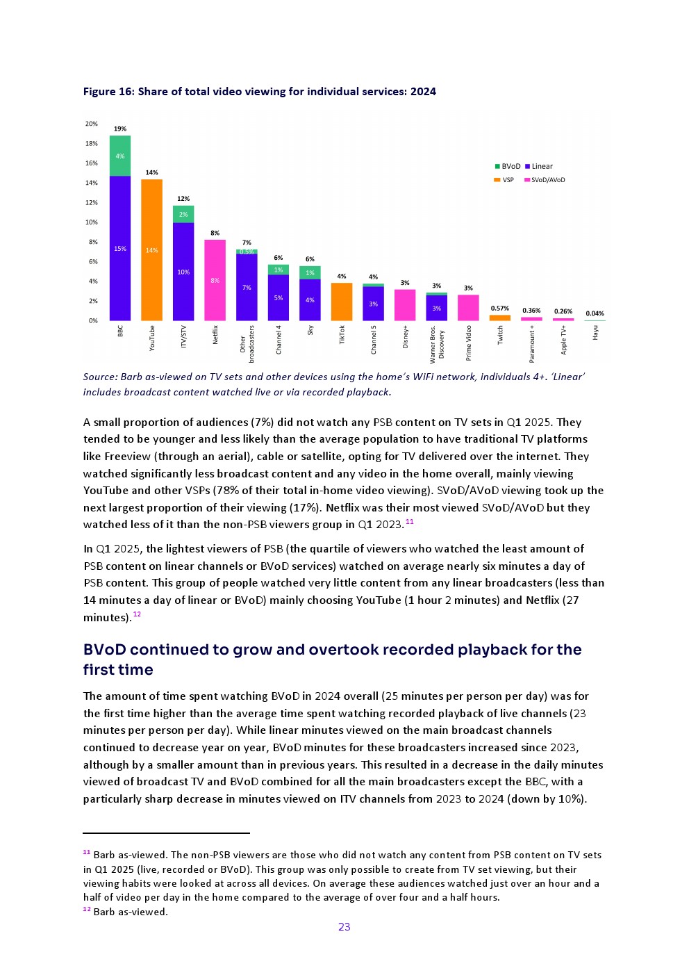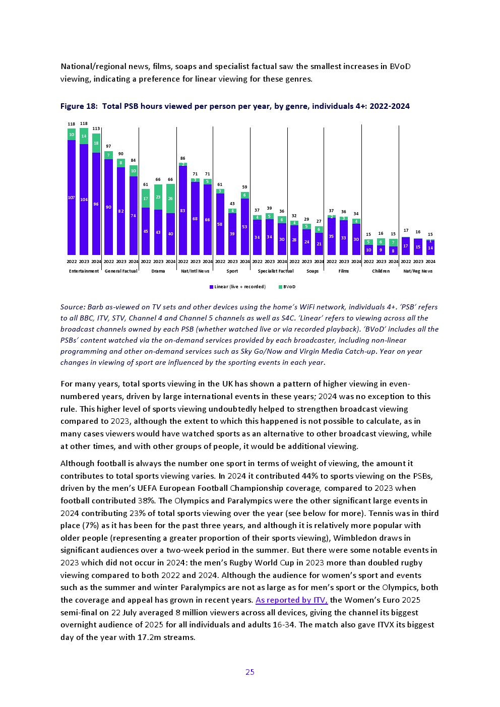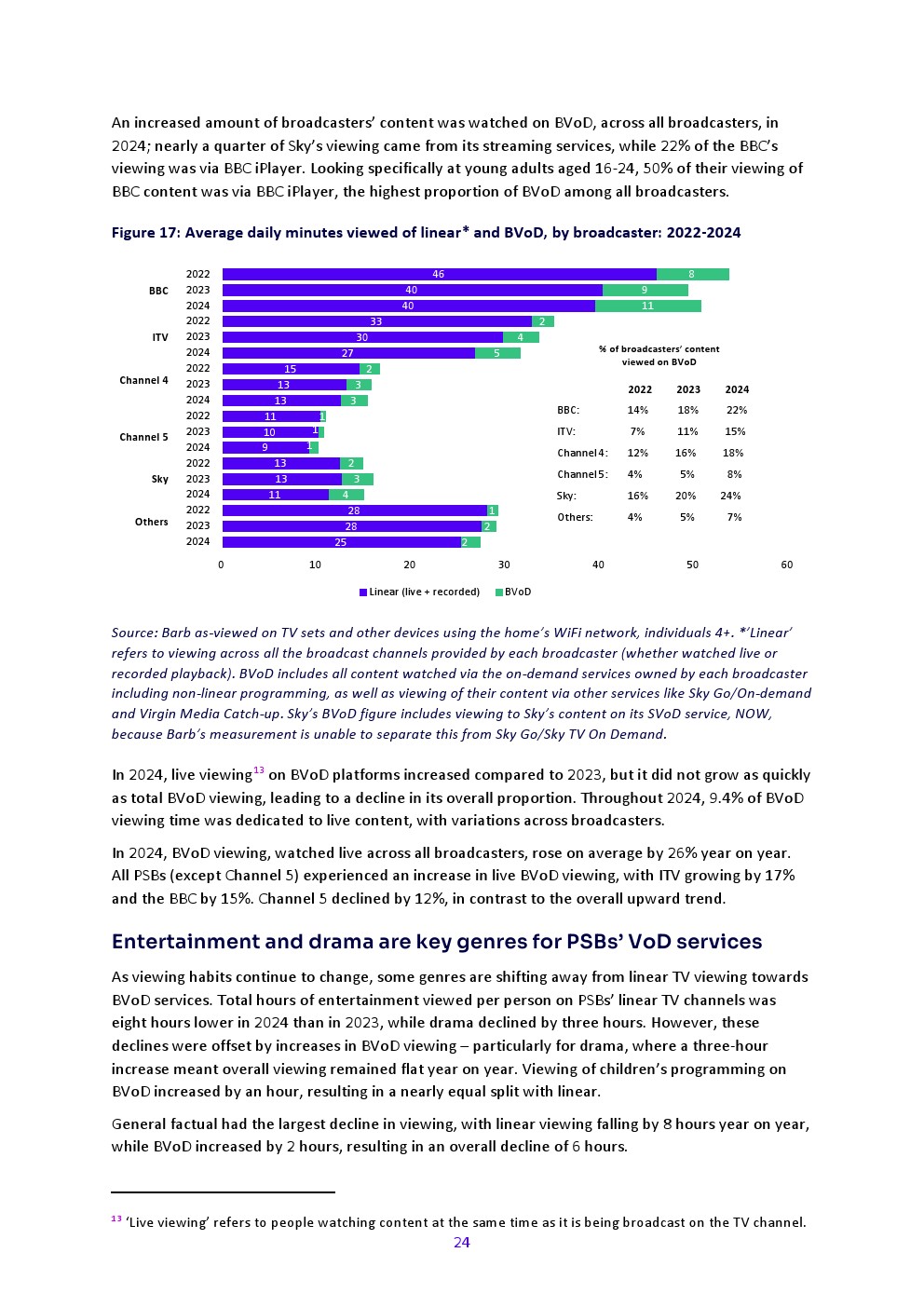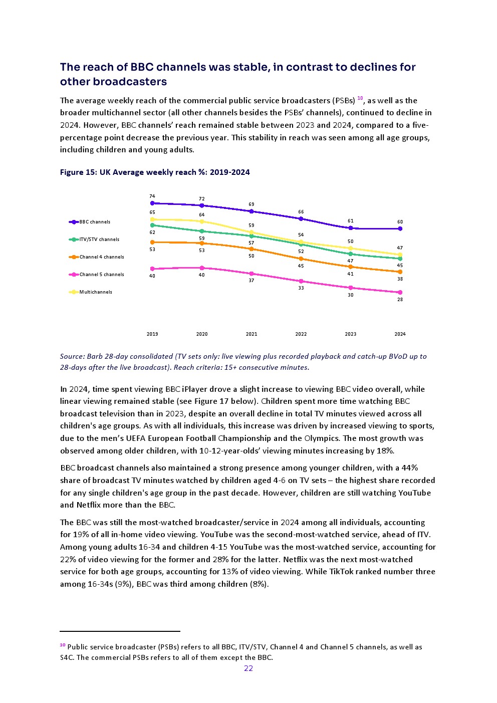 商业公共广播服务机构(PSBs)及更广泛的多频道行业周均覆盖率2024年持续下降。