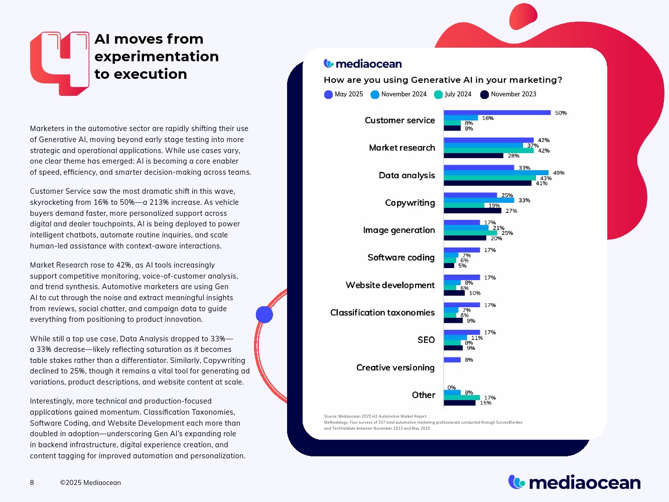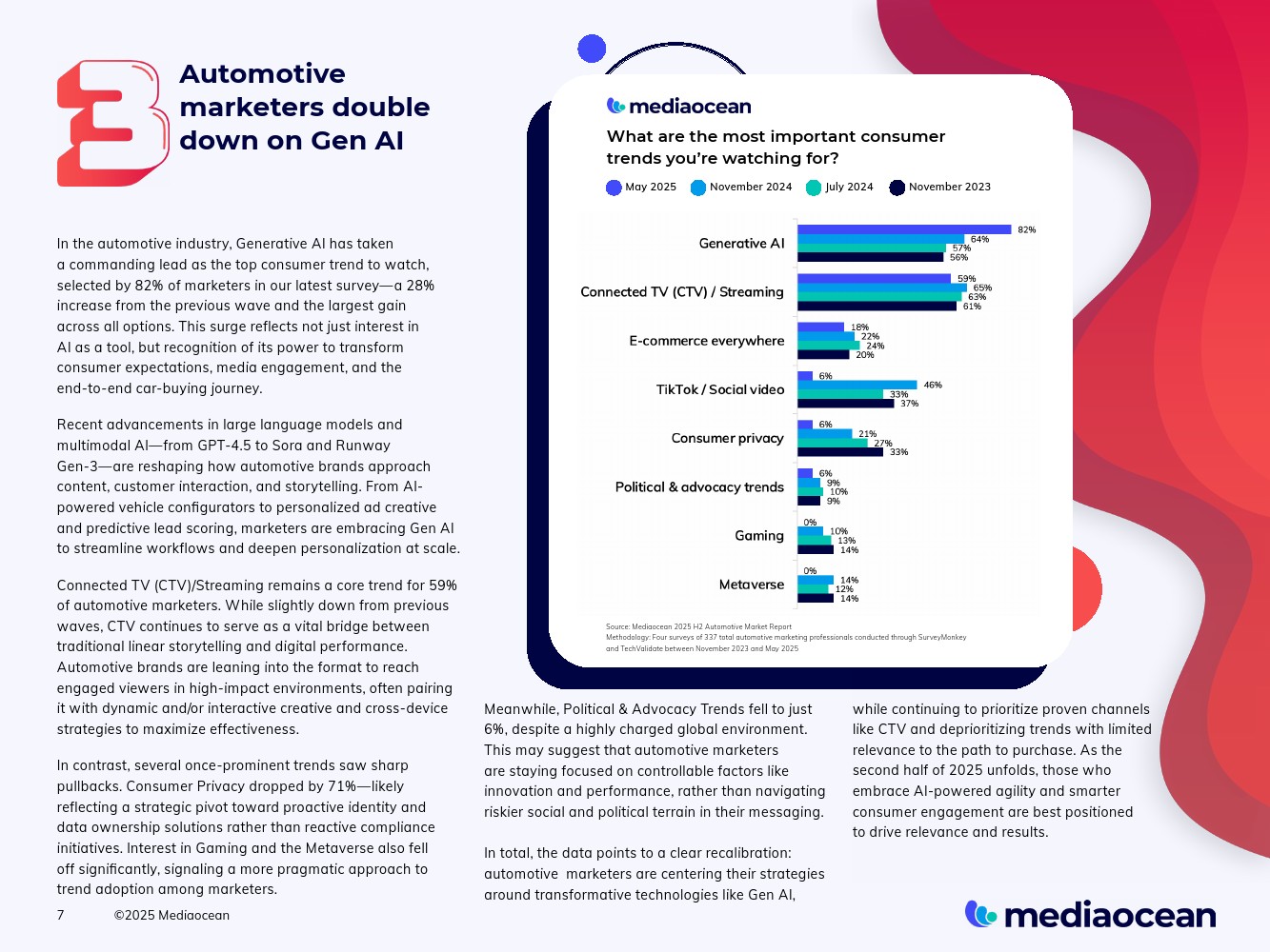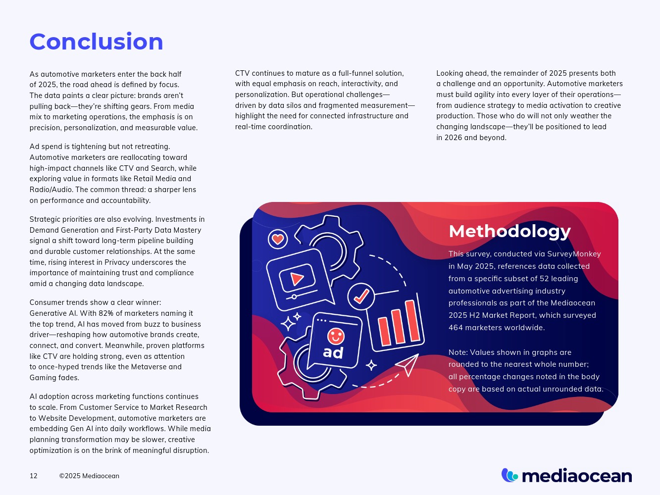 综上所述,这些转变表明,尽管汽车营销人员没有撤退,但他们正在重新配置。今年下半年可能会通过优先级来定义,即在提供可衡量结果的渠道上加倍投入,同时减少对那些价值不太明显的渠道的曝光。