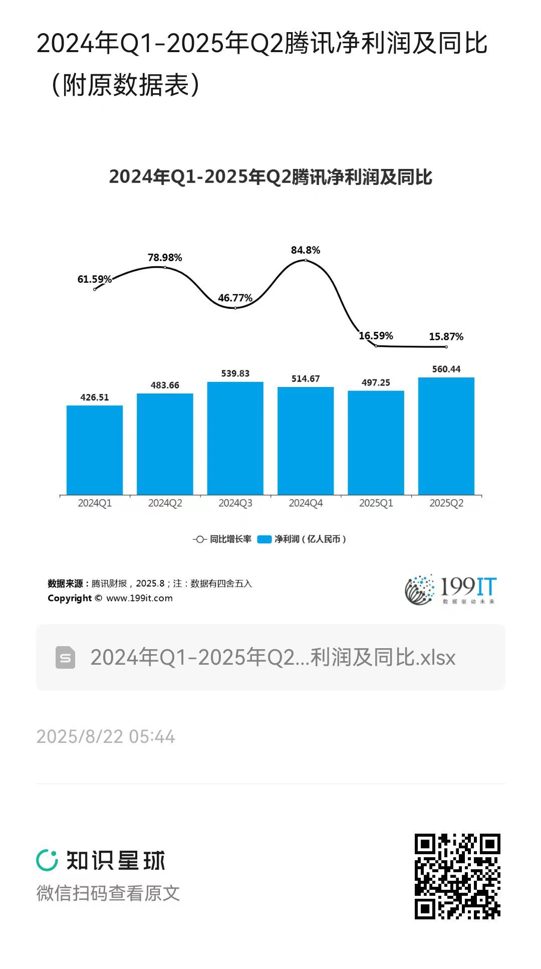 - 2019年Q1-2020年Q2腾讯净利润及增长率(附原数据表)
