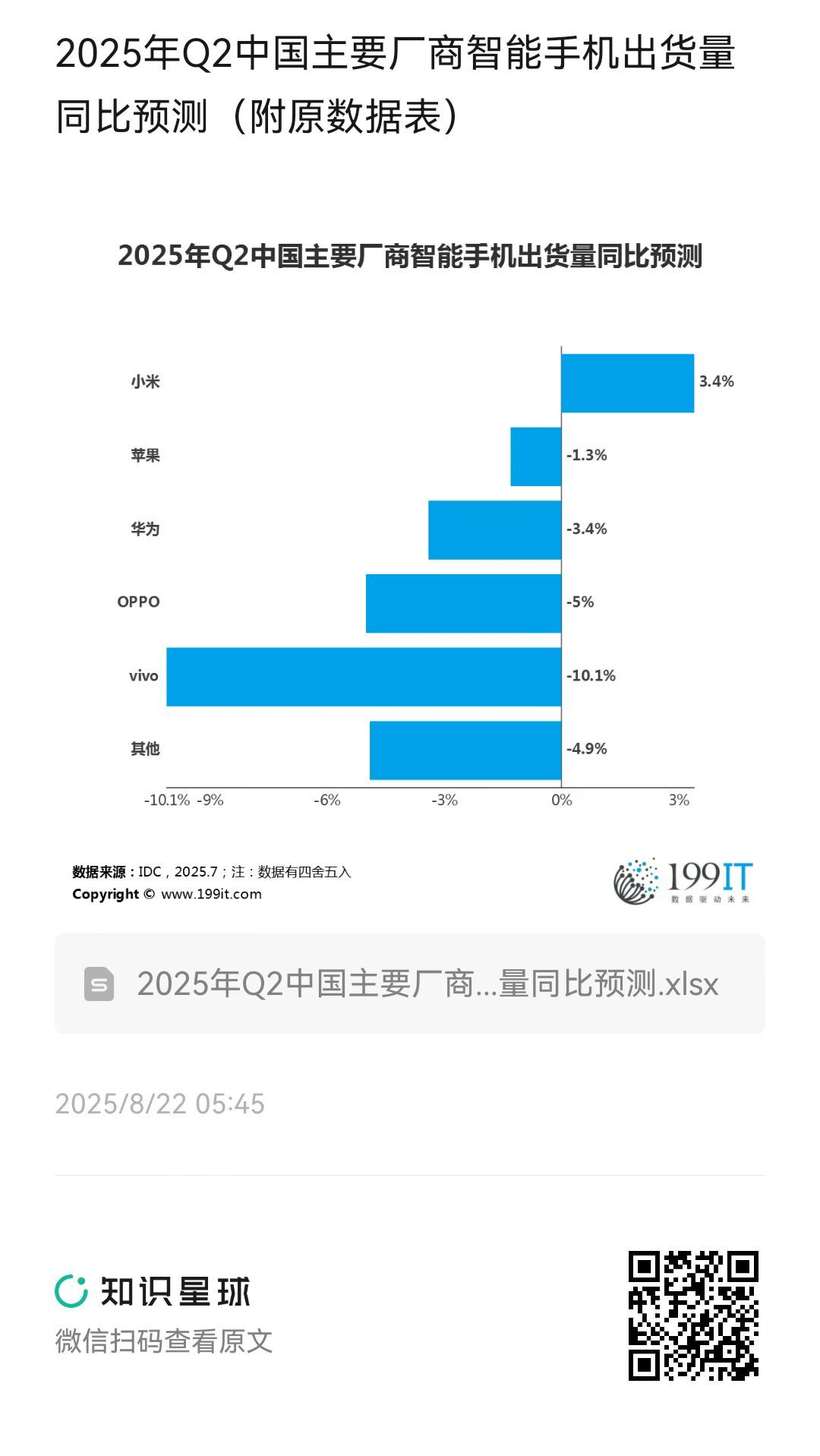 - 2025年Q2全球主要厂商智能手机出货量市场份额(附原数据表)