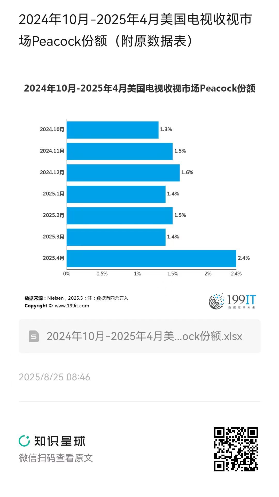 2024年10月-2025年4月美国电视收视市场Peacock份额(附原数据表) ​​​