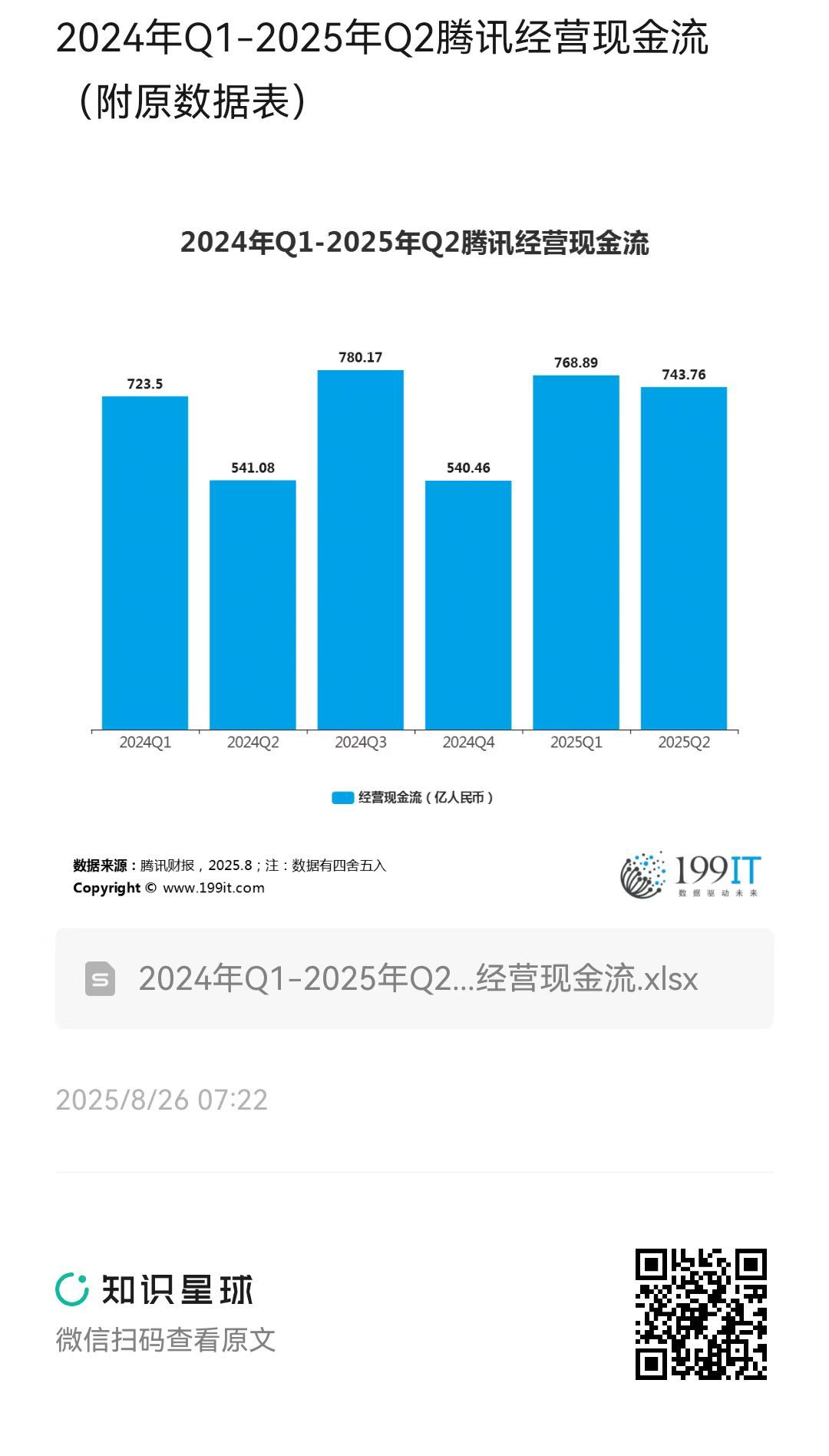 - 2022年Q1-2023年Q1腾讯经营现金流及增长率(附原数据表)