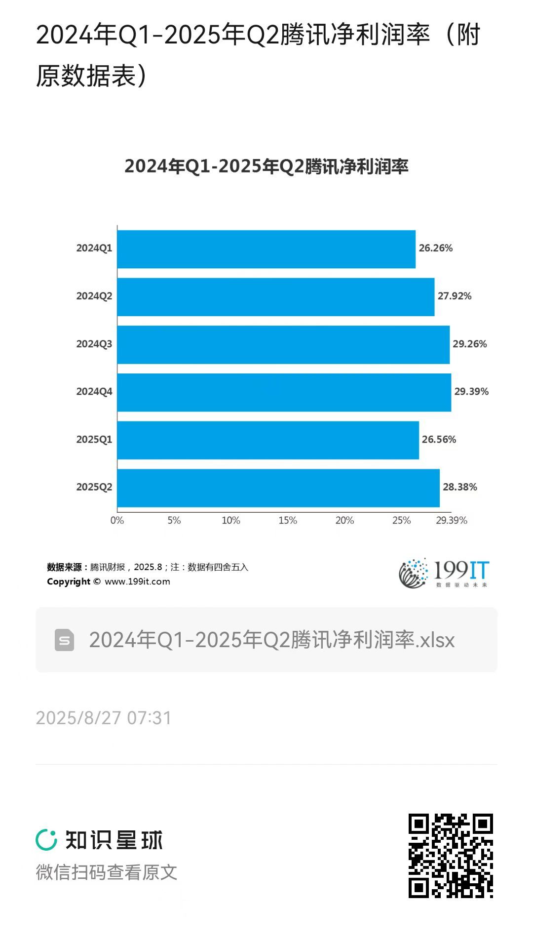 2024年Q1-2025年Q2腾讯净利润率(附原数据表) ​​​