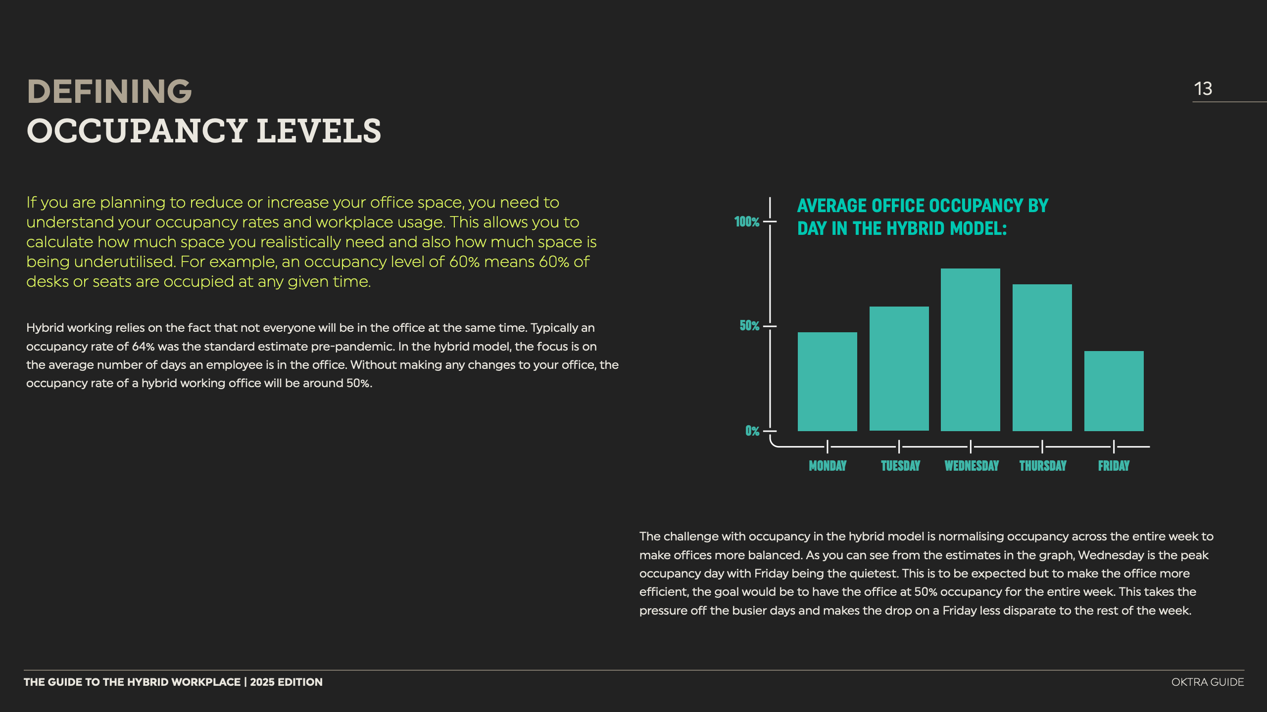 然而,混合办公的普及也带来了新的管理难题,其中最突出的是物理空间利用率的失衡。疫情前,办公室的平均使用率约为64%,而在混合模式下,这一数字降至50%左右,且呈现出明显的周内波动。通常周三是到岗高峰,而周五则最为冷清。这种潮汐式的办公空间使用模式,对企业的房地产资产管理和资源配置效率提出了严峻挑战。