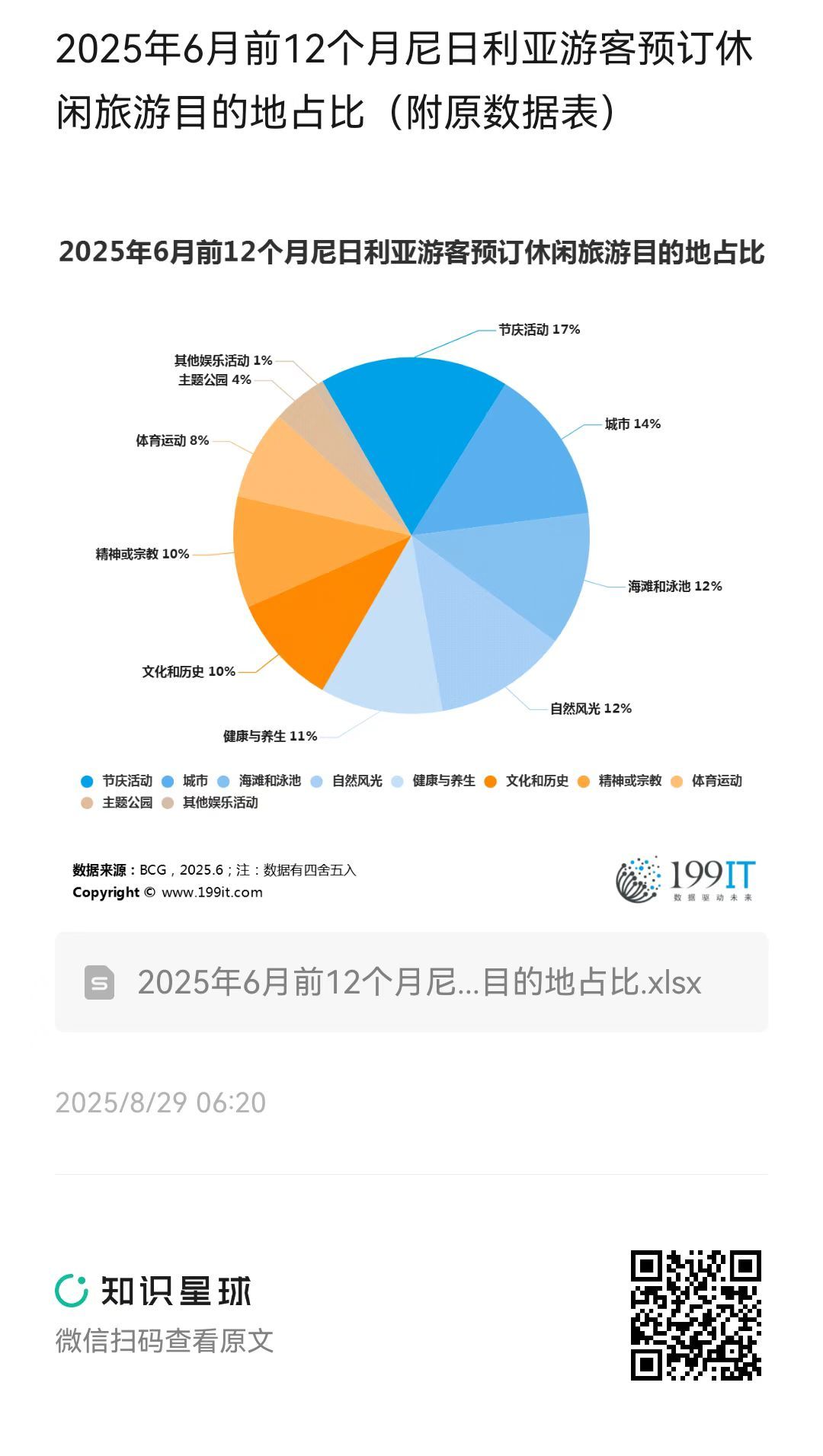 2025年6月前12个月尼日利亚游客预订休闲旅游目的地占比(附原数据表) ​​​