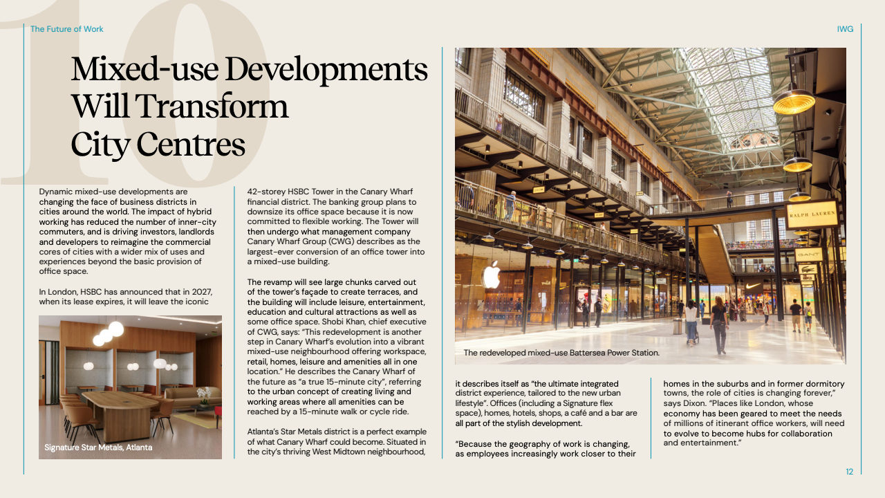 城市核心区正向“15分钟多元社区”演变,实现功能复合化。 伦敦金丝雀码头HSBC大楼正改造为办公、娱乐、教育、文化共生的综合体。 亚特兰大Star Metals区和伦敦奥林匹亚会展中心改造项目均展示出新范式。