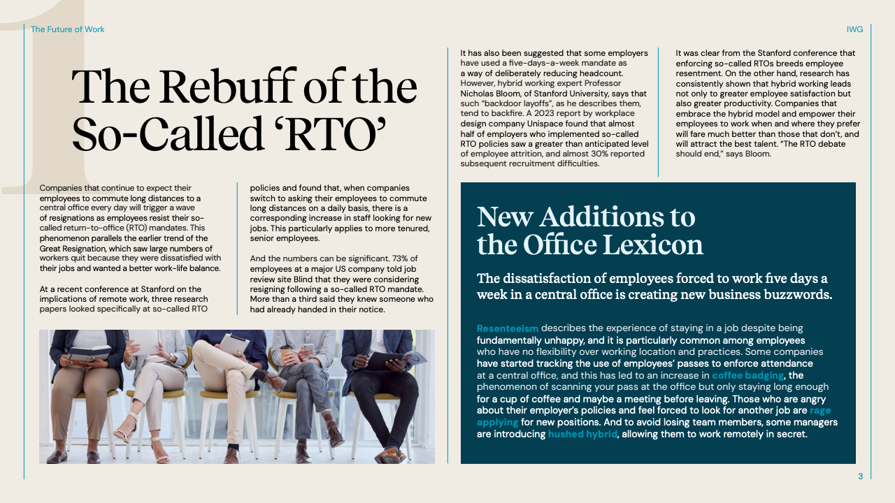 国际工作场所集团(IWG)发布的报告,对2025年未来办公趋势进行了前瞻性分析。 这份报告系统梳理了全球120多个国家、数千家企业及逾8000万办公人群的运营数据与最新调研。 报告指出,2025年将成为全球职场范式转型的加速年,混合办公模式影响深远。