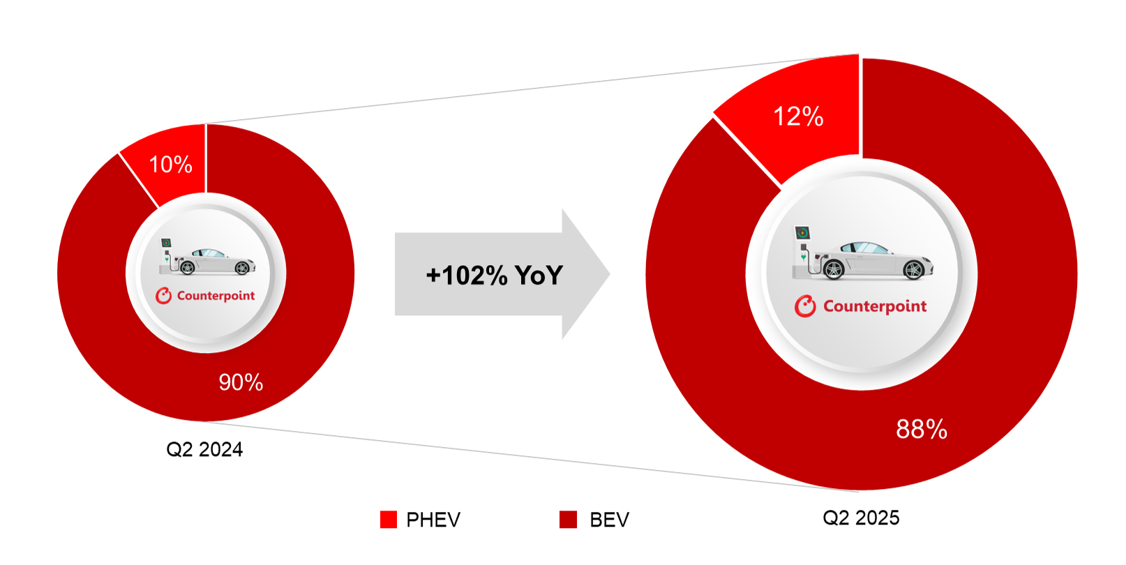 Counterpoint最新发布的“电动汽车销售追踪报告”显示,2025年第二季度,东南亚电动汽车销量同比增长102%,是全球向电动化转变最快的地区之一。这一增长不仅反映了价格合理的纯电动汽车(bev)的可用性不断提高,还反映了消费者意识增强、政府支持激励措施以及当地产能扩大所带来的整体势头。