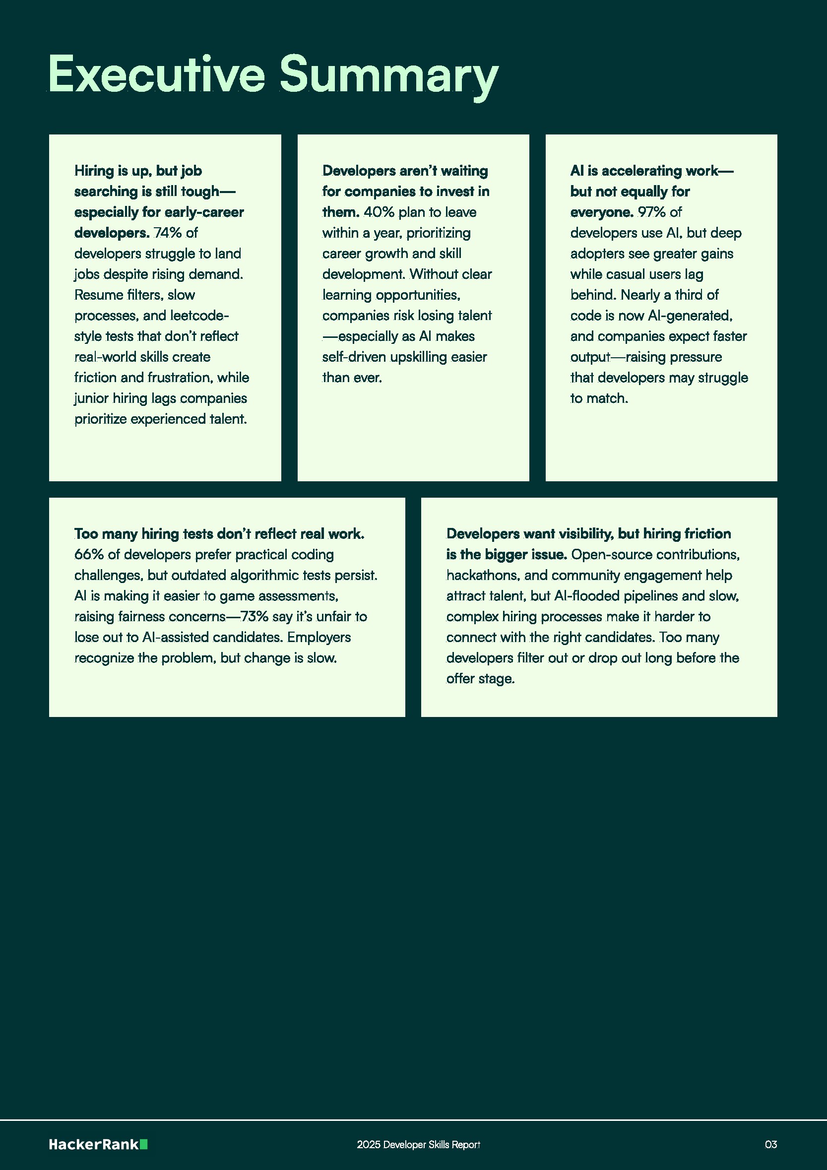 招聘在增加,但74%的开发者仍然难以找到工作。这种脱节不在于需求;而在于公司如何招聘、评估和留住人才。