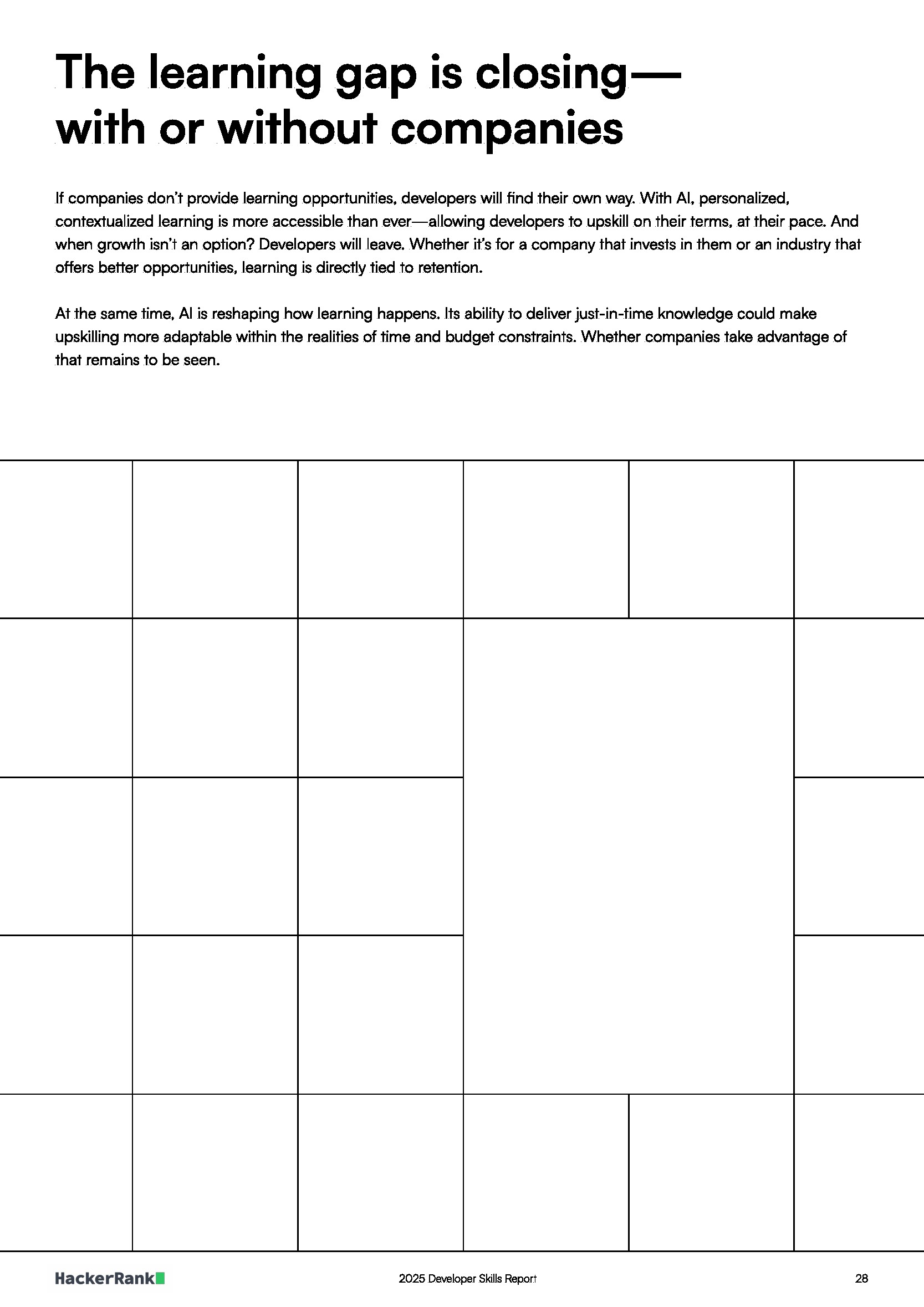 HackerRank发布了“2025年开发人员技能报告”。HackerRank 建立在一个简单的理念之上:技能应比背景更重要。其帮助公司基于真实能力而非简历关键词来招聘和发展开发人才,并支持一个拥有2600多万开发者的社区追求他们的全部潜力。