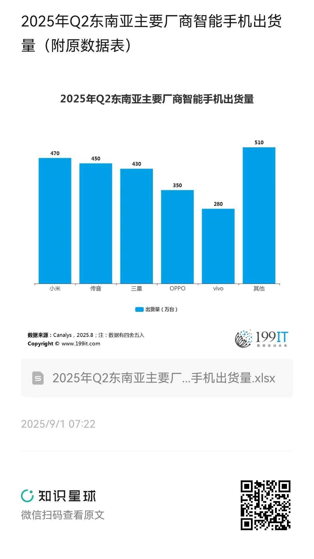 - 2025年Q2东南亚主要厂商智能手机出货量同比(附原数据表)