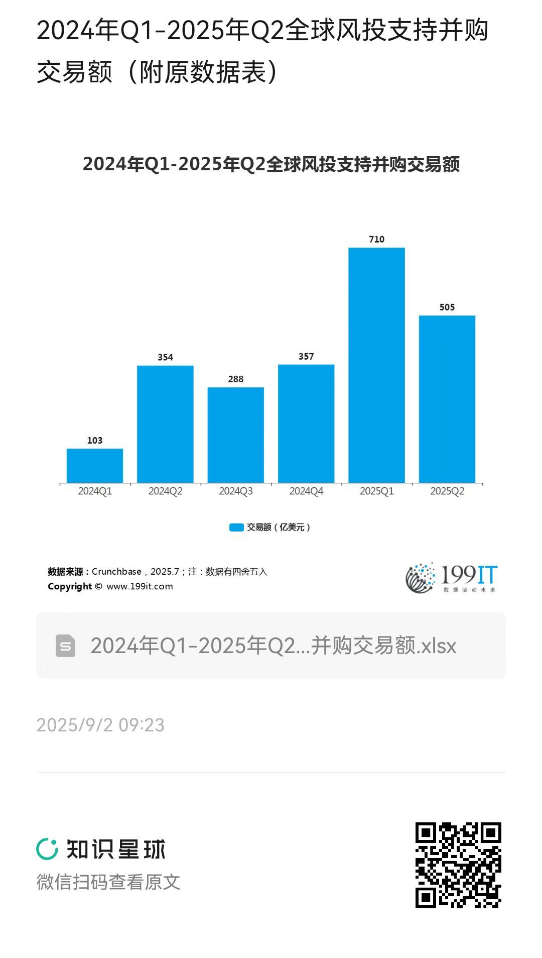 - 2024年Q1-2025年Q2全球风投支持并购交易量(附原数据表)