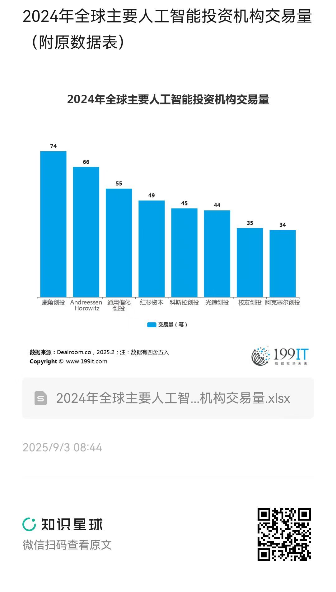 2024年全球主要人工智能投资机构交易量(附原数据表) ​​​