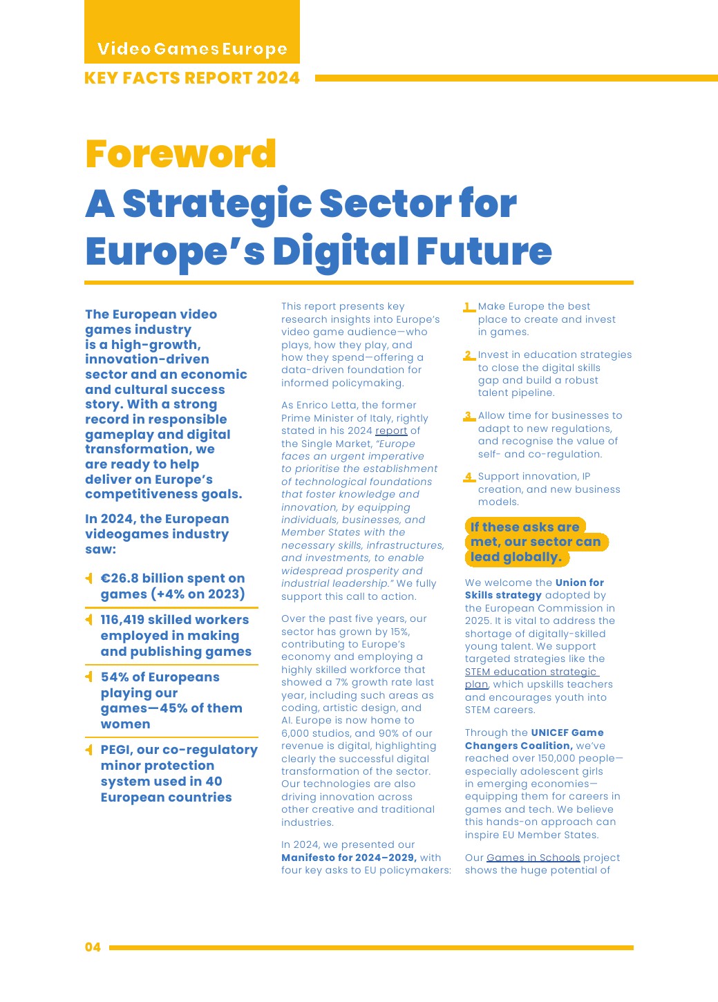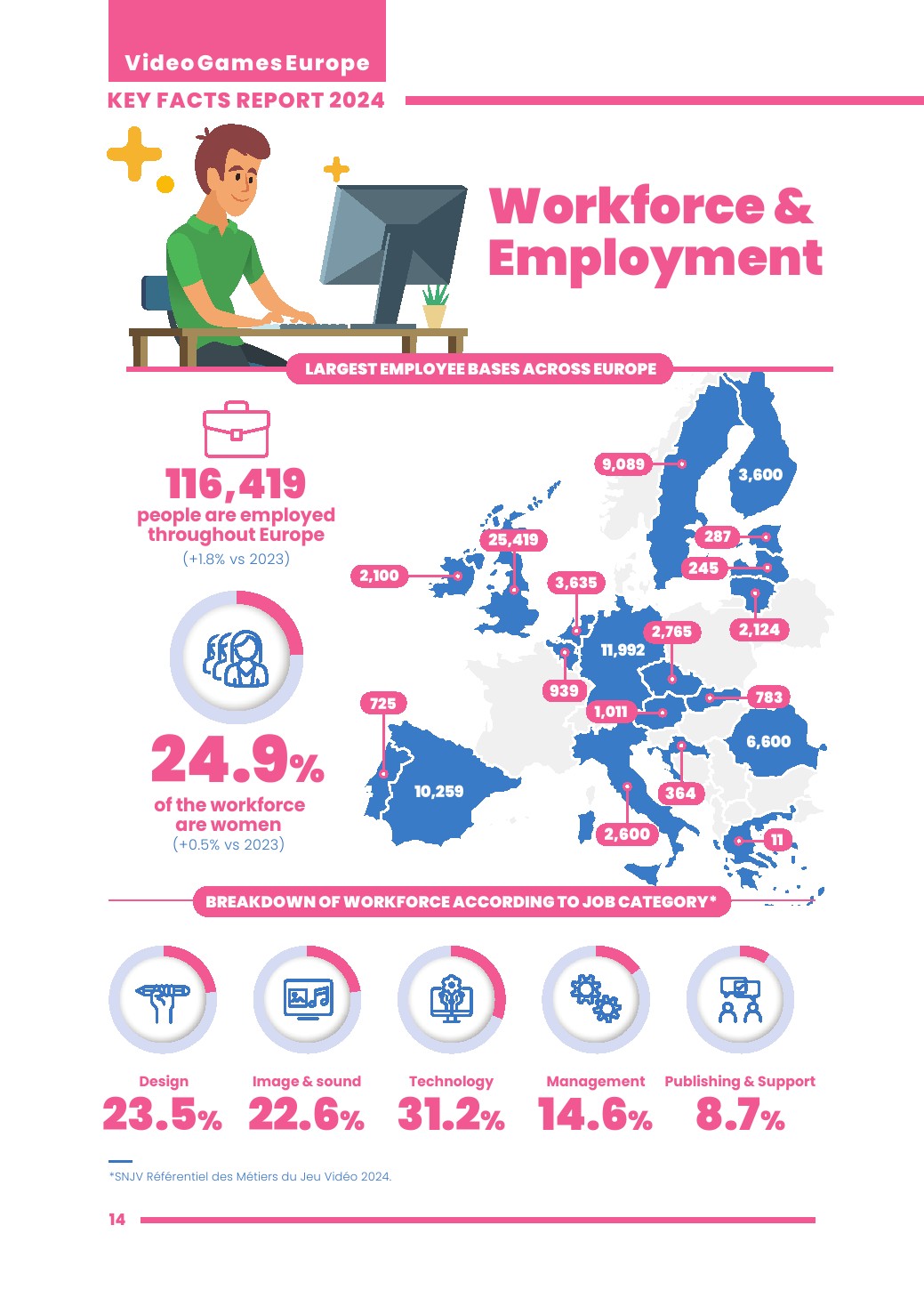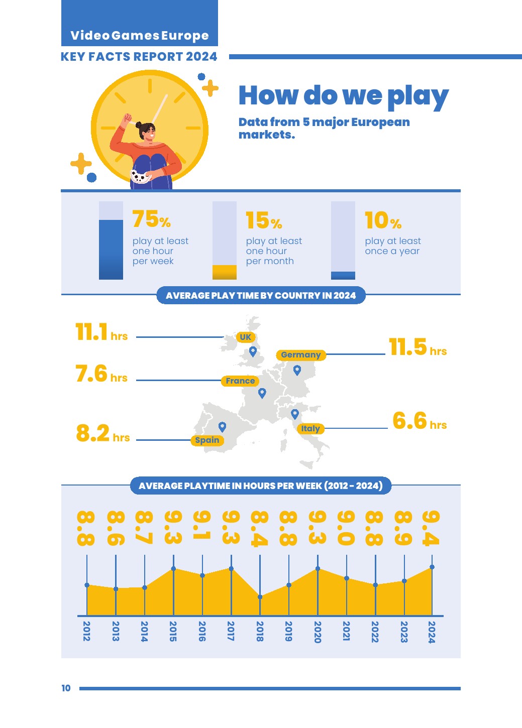 报告采用益普索、游戏销售数据(GSD)及行业协会成员数据,分析了2024年欧洲游戏行业的收入、就业和玩家数量。
