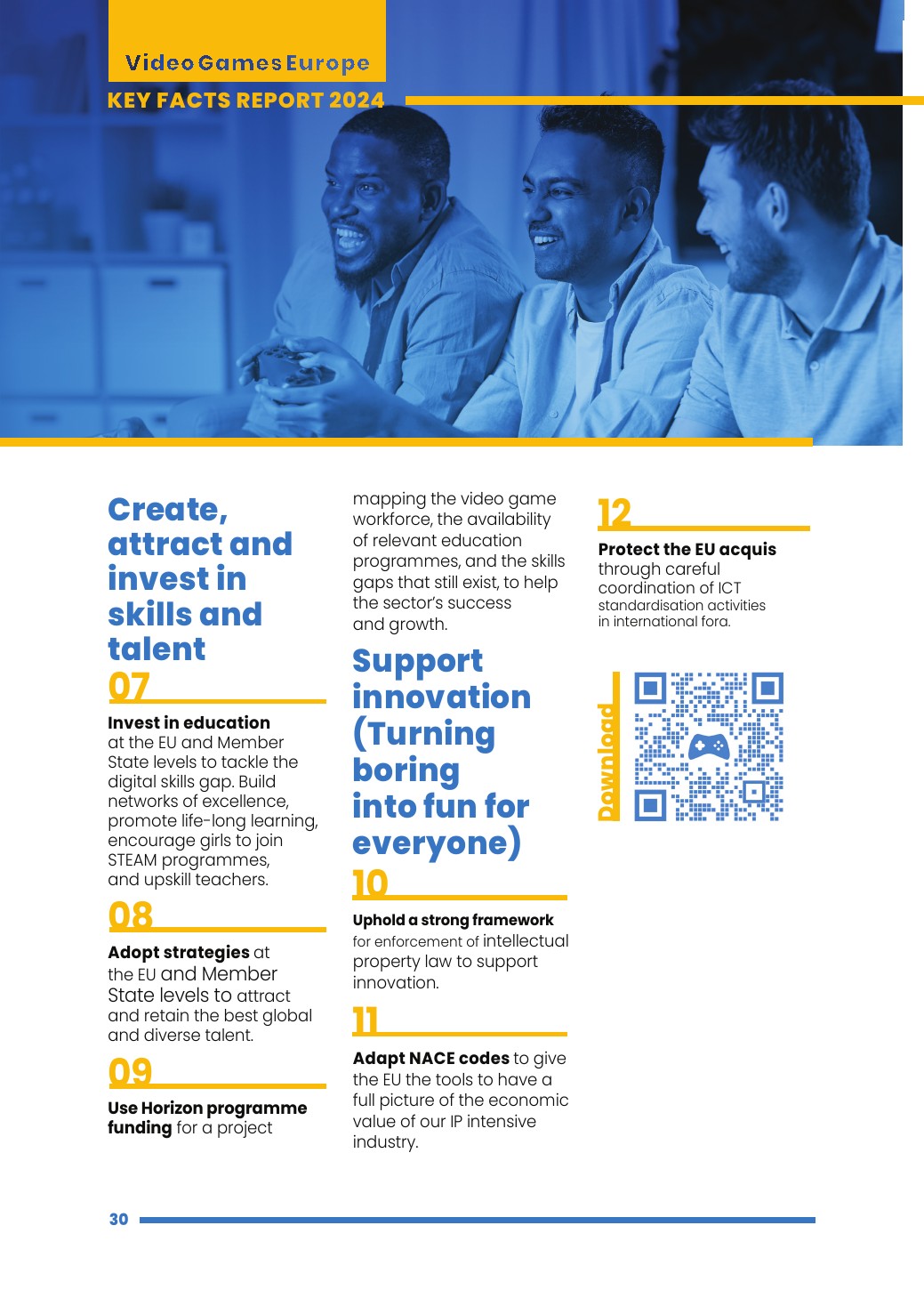 EGDF主席Hendrik Lesser表示:”欧洲现有6,000家工作室,数字收入占比表明行业数字化转型成功。我们的技术正推动其他创意与传统行业创新,为欧洲提供赋能数字公民、发展创意经济的独特机遇。亟需政策环境支持行业战略增长潜力。”