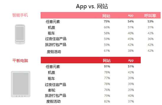 企业原生App对比移动网站的旅游预订应用,后者远远胜出。